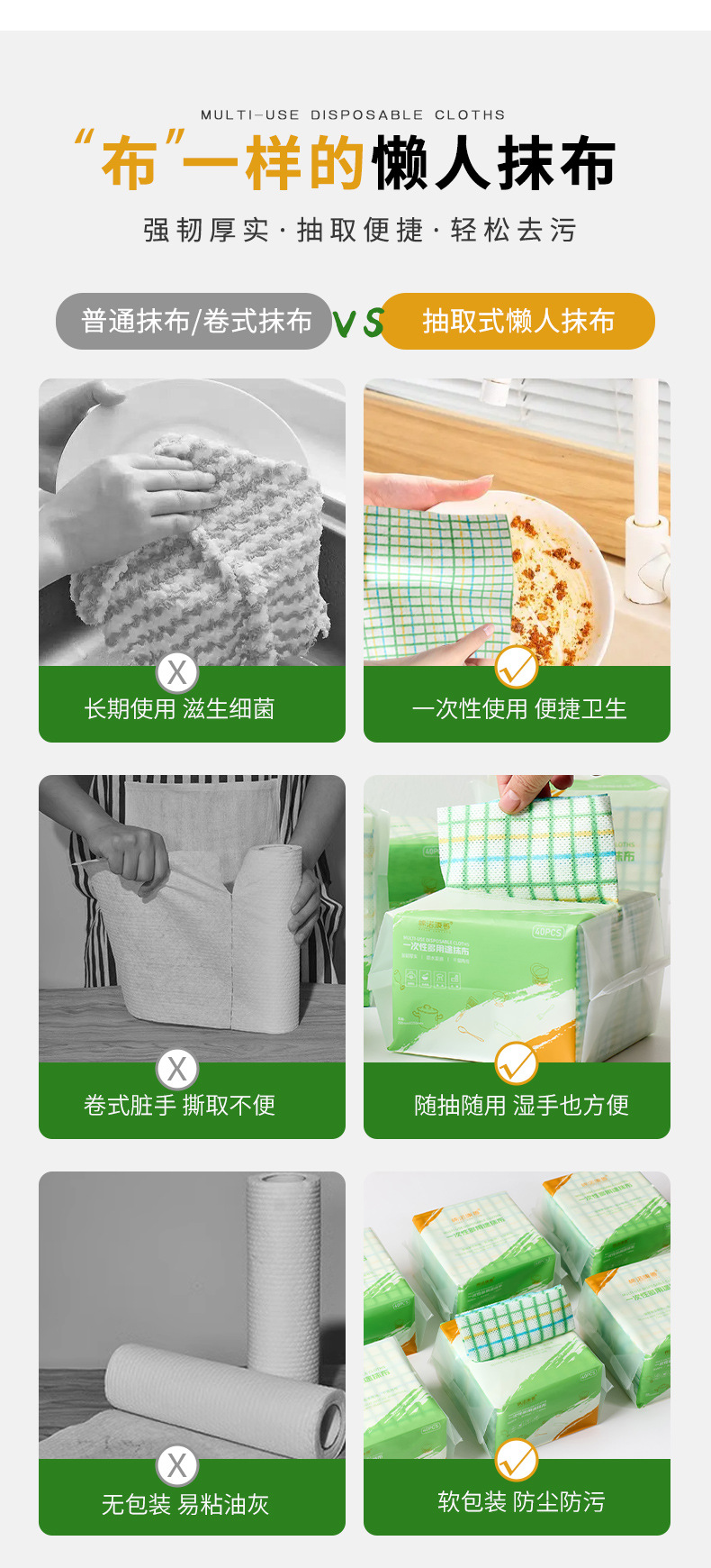 주방 일회용 걸레, 탈착식, 물과 기름 흡수, 오염 제거, 설거지용 천, 다용도 게으름뱅이 걸레