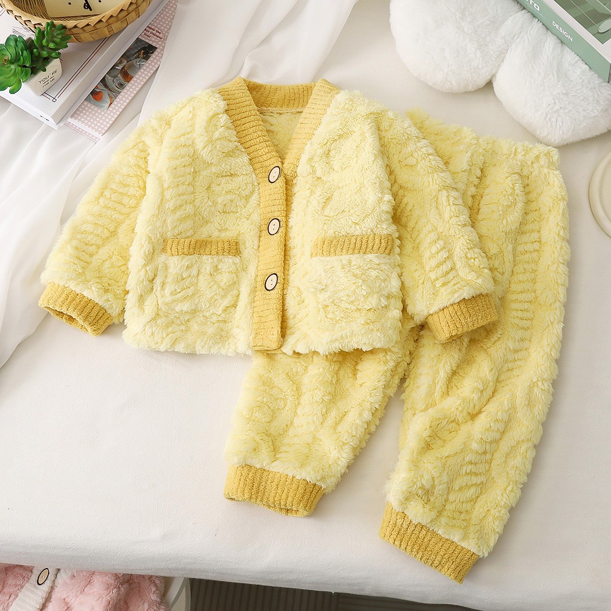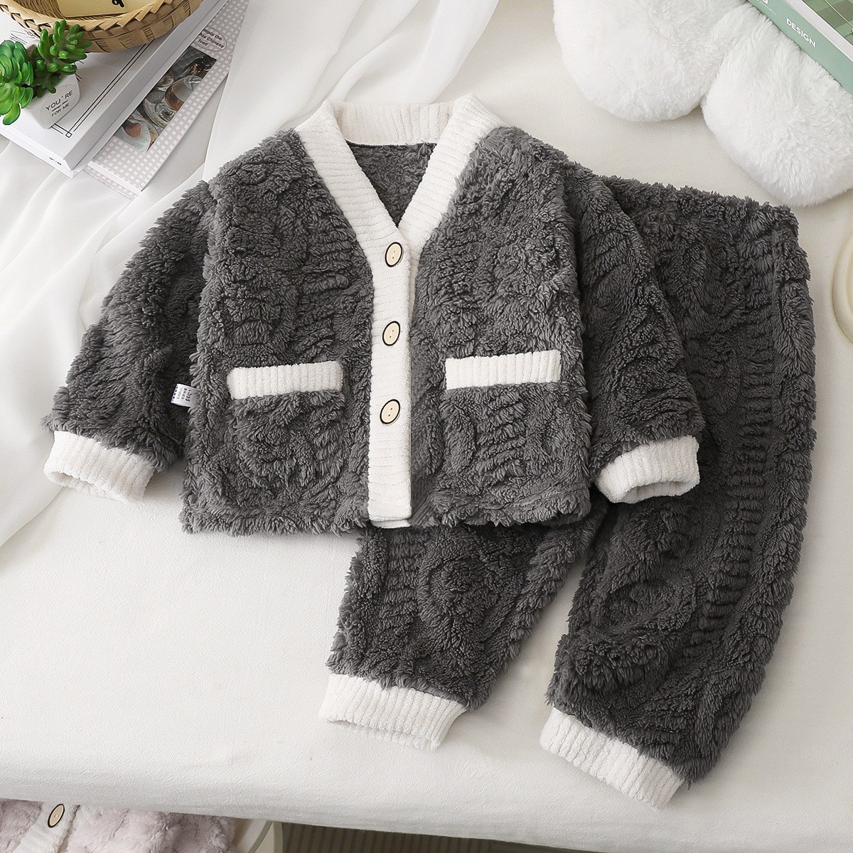 어린이 잠옷 세트 겨울 새 아기 기모 두꺼운 소년 집 옷 여아 잠옷 따뜻한 어린이 의류