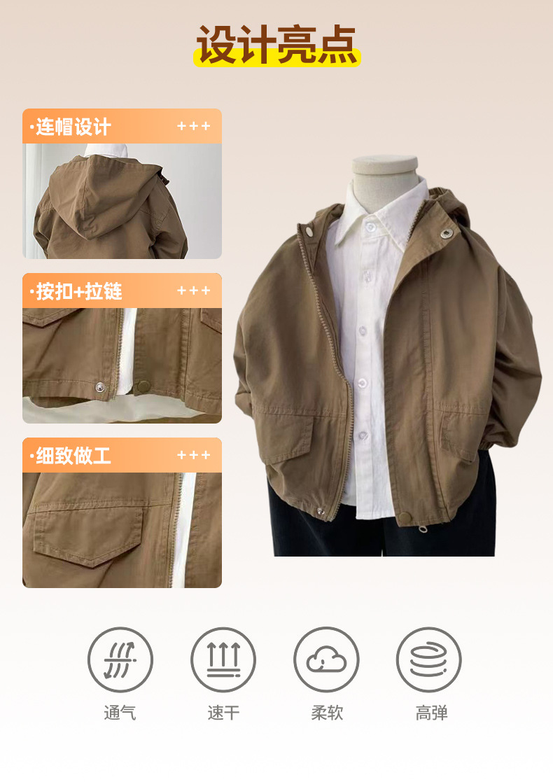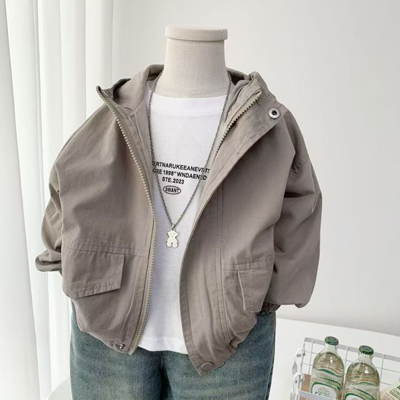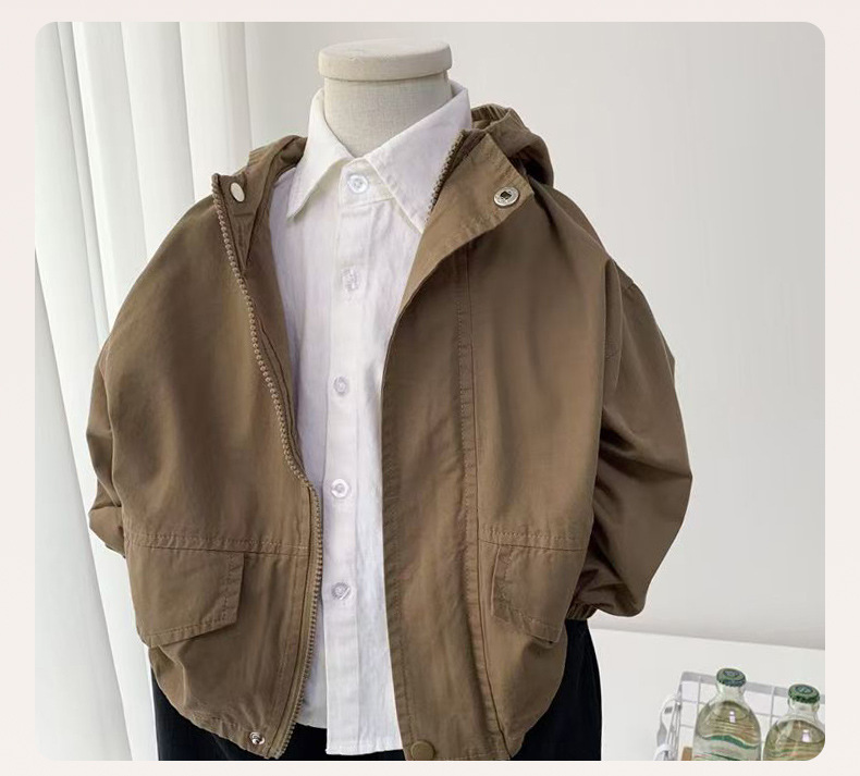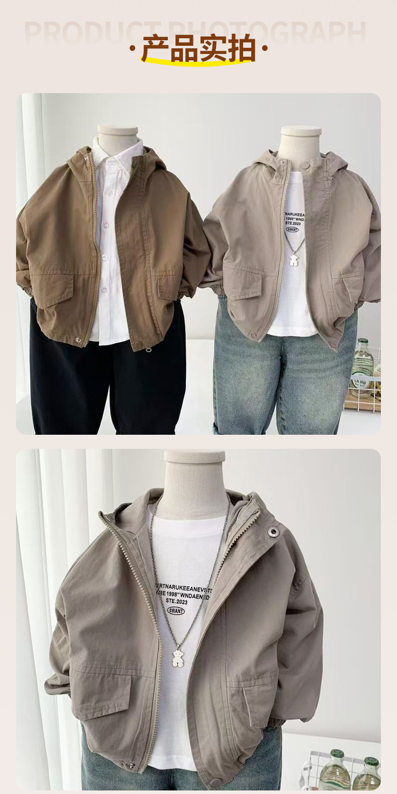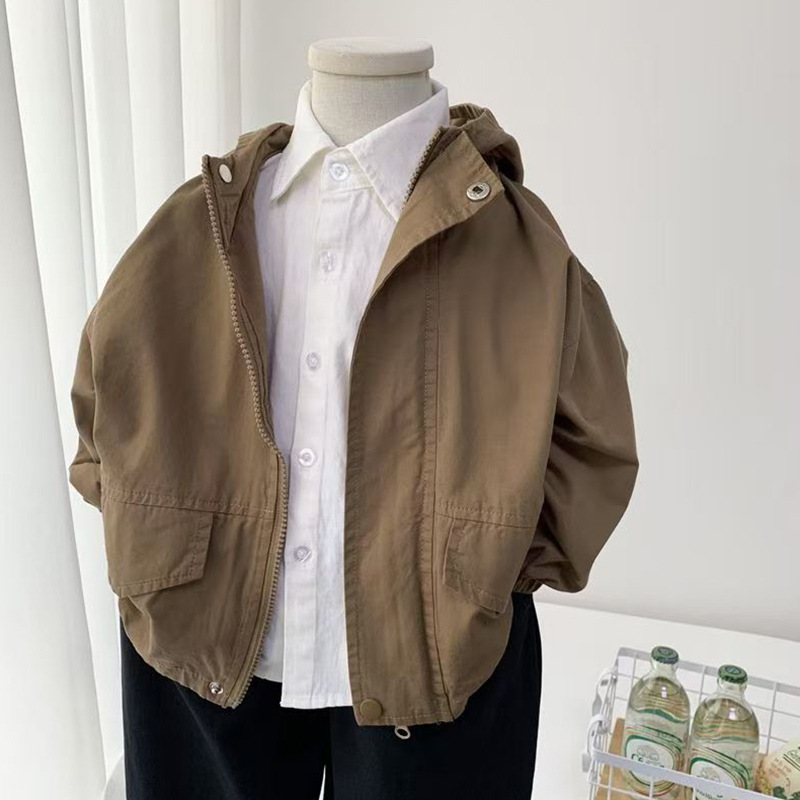 소년 코트 얇은 새 어린이 한식 후드 솔리드 컬러 코트 캐주얼 봄과 가을 유행 카디건 탑 코트스토어 가기
