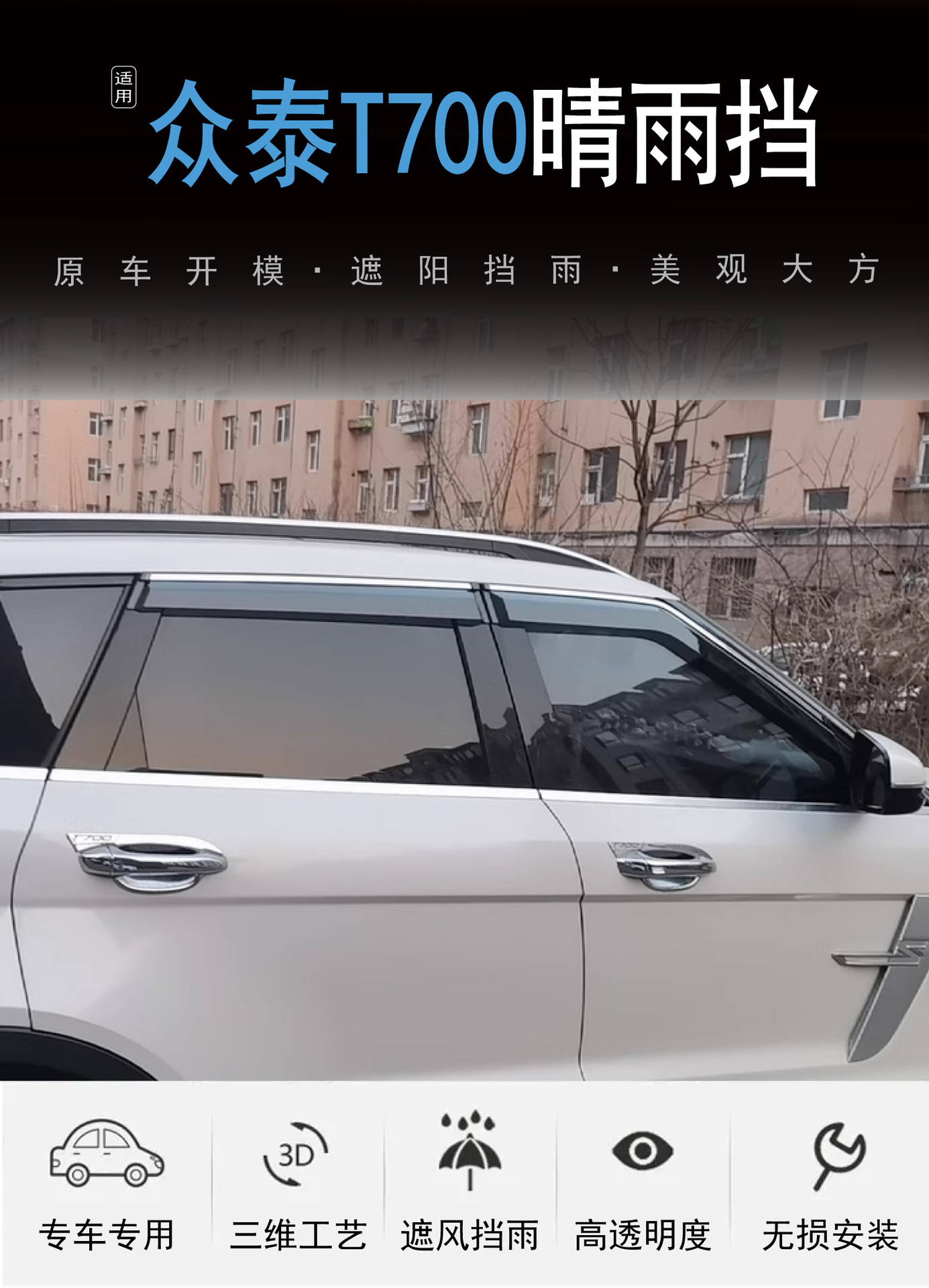 2017 Zhongtai T700 자동차 창 수정 비 방지 아크릴 접착 자동차 비 방패의 국경 간 적용스토어 가기