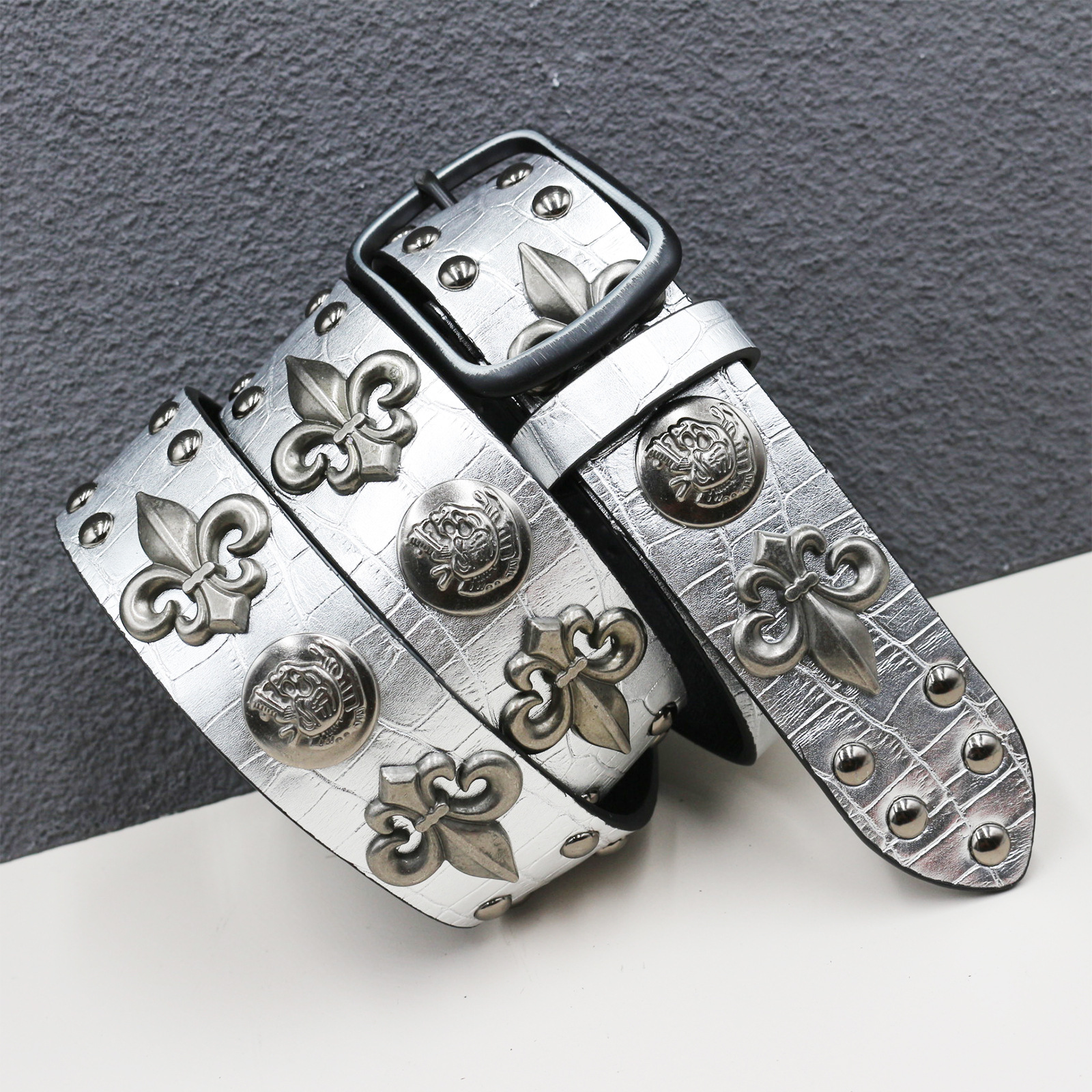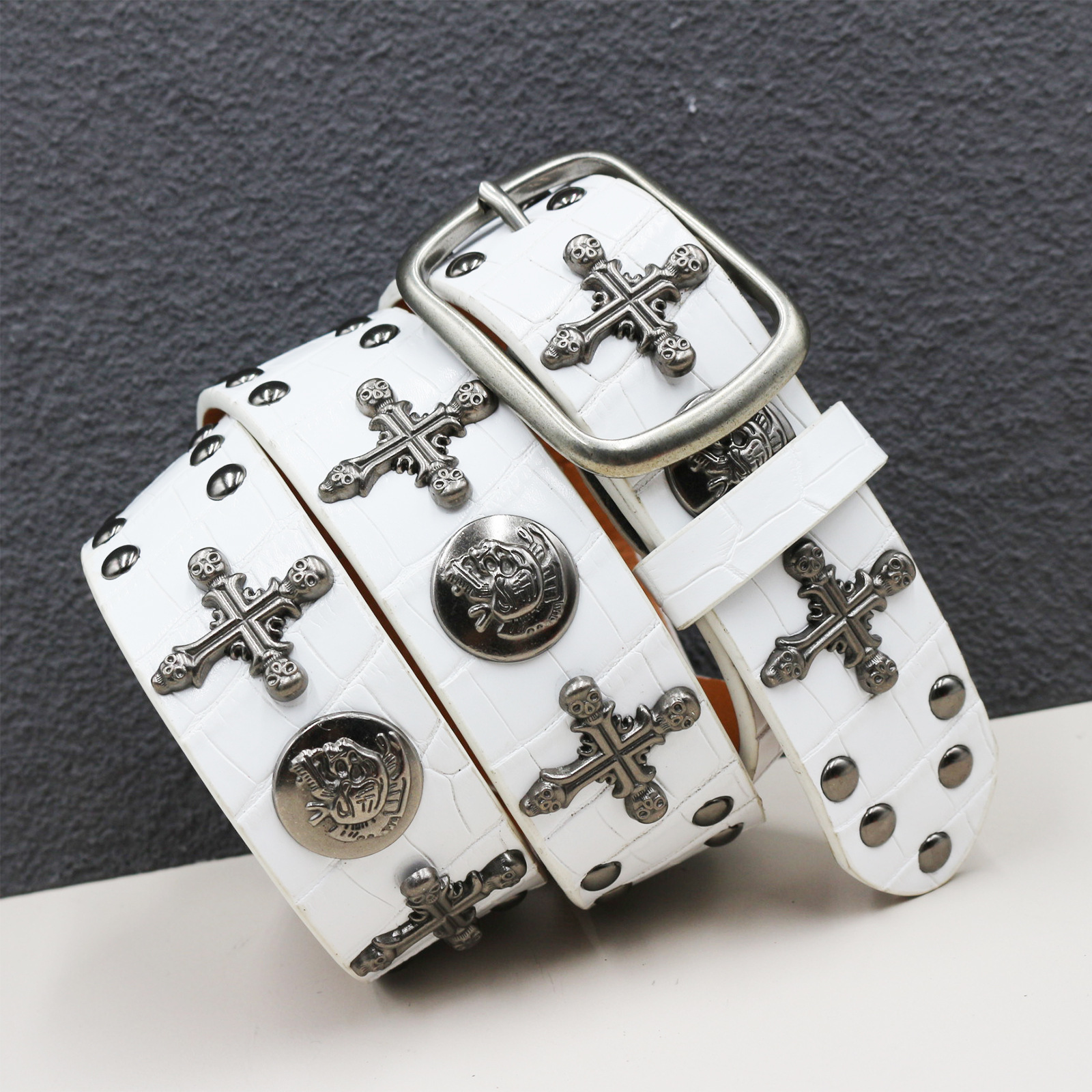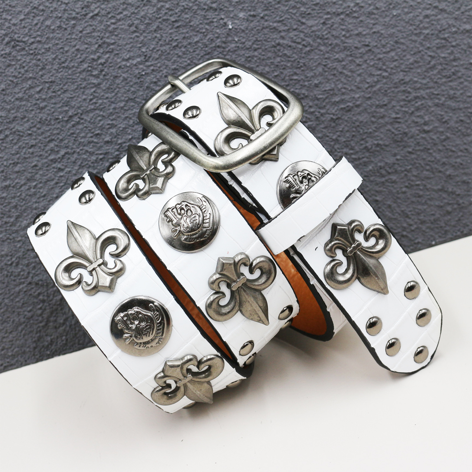 원래 새로운 두개골 리벳 벨트 펑크 남성 벨트 여성 뱀 패턴 조커 장식 벨트 도매