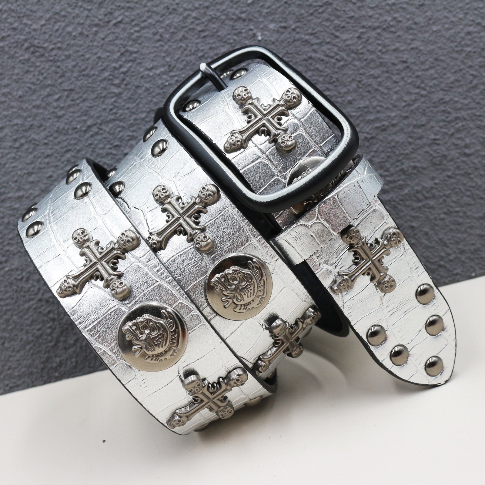 • 십자가 해골 악어 무늬 실버
