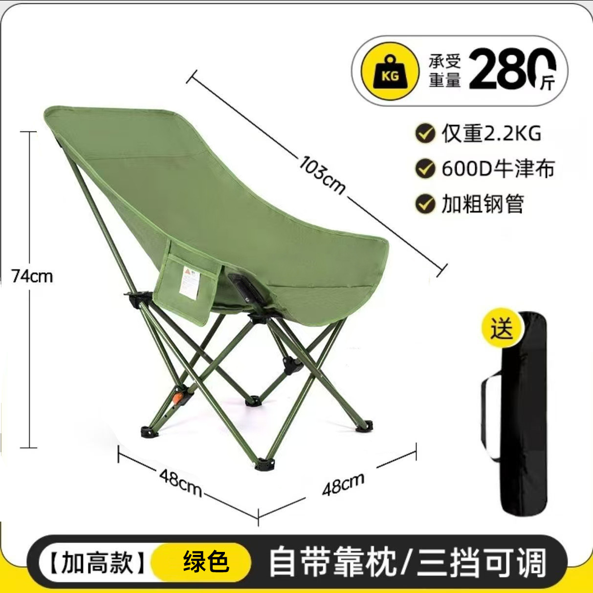 외국 무역용 하이백 문체어, 앉고 눕는 3단계 조절 가능 접이식 의자, 야외 캠핑 휴대용 접이식 의자스토어 가기