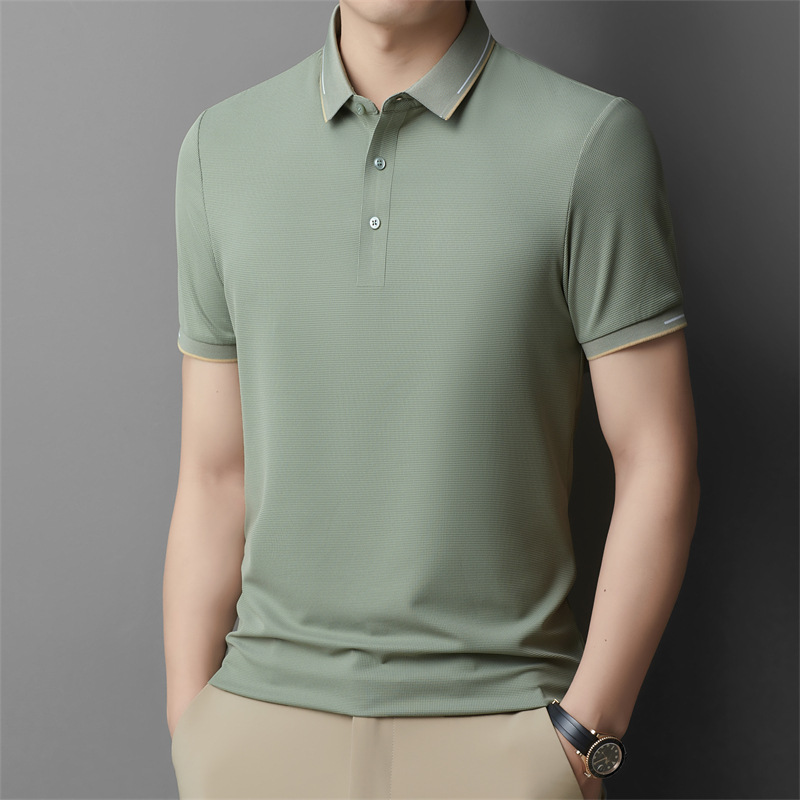 캐주얼 비즈니스 라펠 탑 여름 반팔 폴로셔츠 남성용 슬림핏 탑 단색 티셔츠 해외 무역스토어 가기