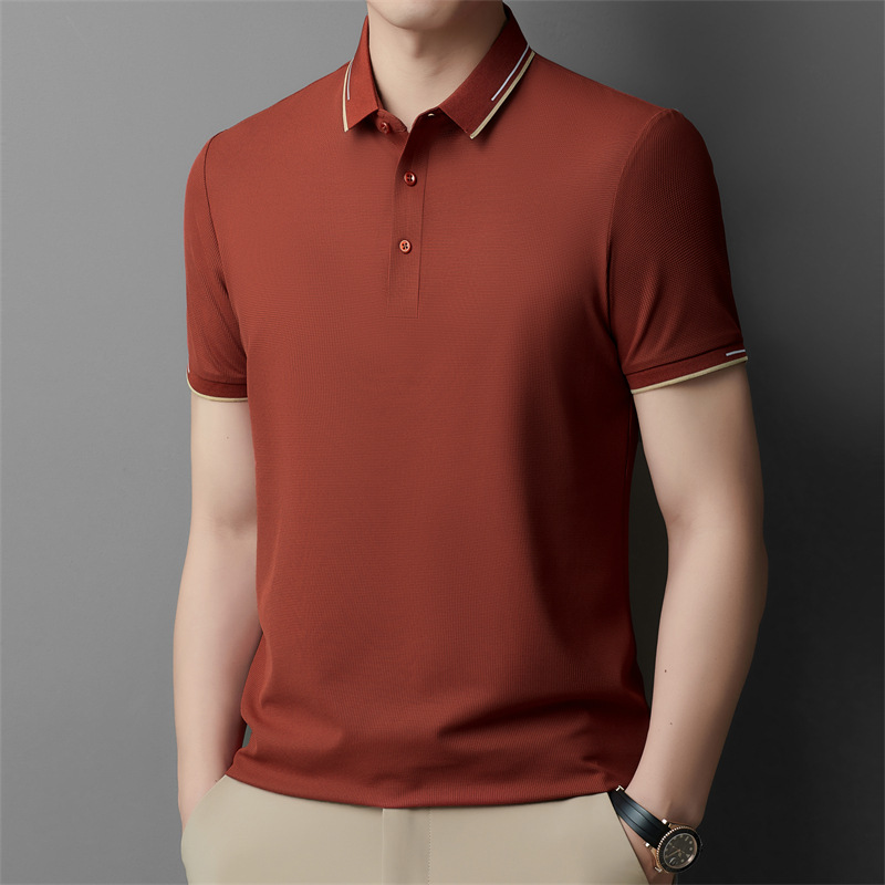 캐주얼 비즈니스 라펠 탑 여름 반팔 폴로셔츠 남성용 슬림핏 탑 단색 티셔츠 해외 무역