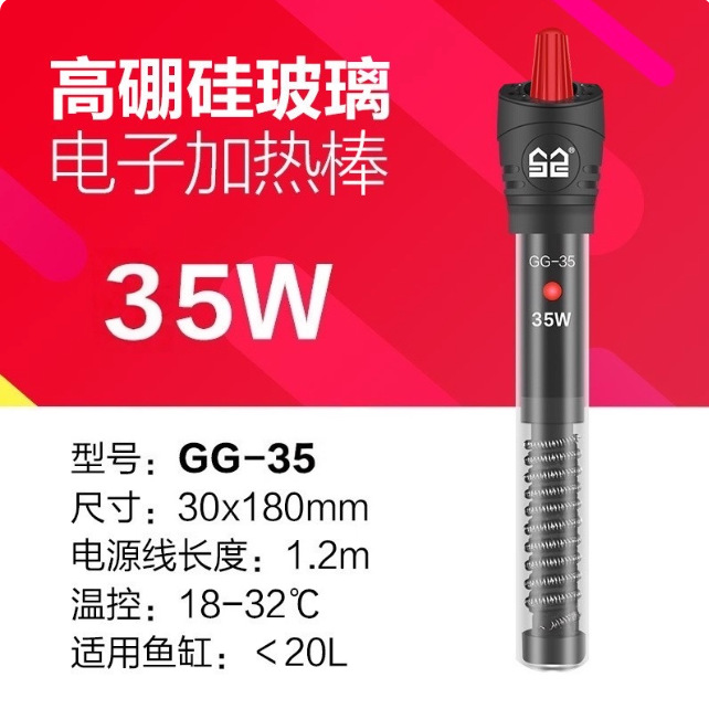 • 유리 가열봉 35W(길이 18cm)에는 온도계가 함께 제공됩니다.