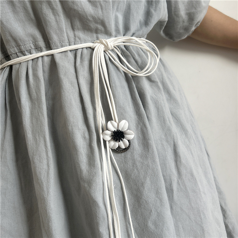 总长150cm .花朵直径4.3cm .圆扣直径2.6cm.腰带宽0.2cm