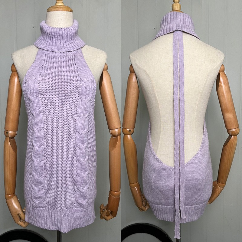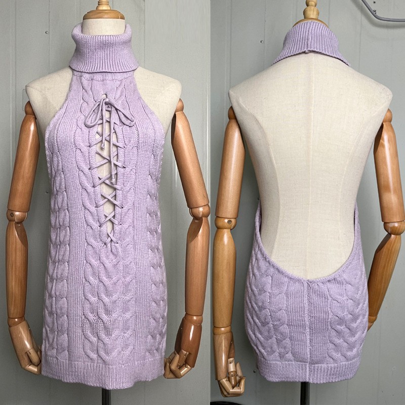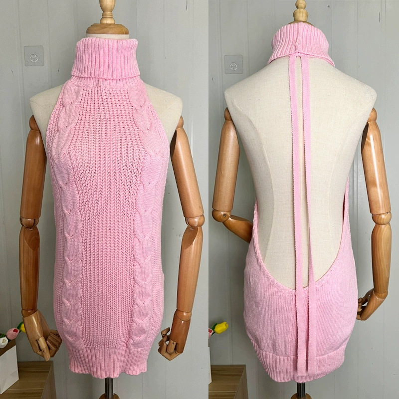 유럽과 미국의 섹시한 속옷 여성 유니폼 유혹 모에 새 소녀 백리스 노동자 스타 센스 하이 넥 니트 스웨터 대외 무역