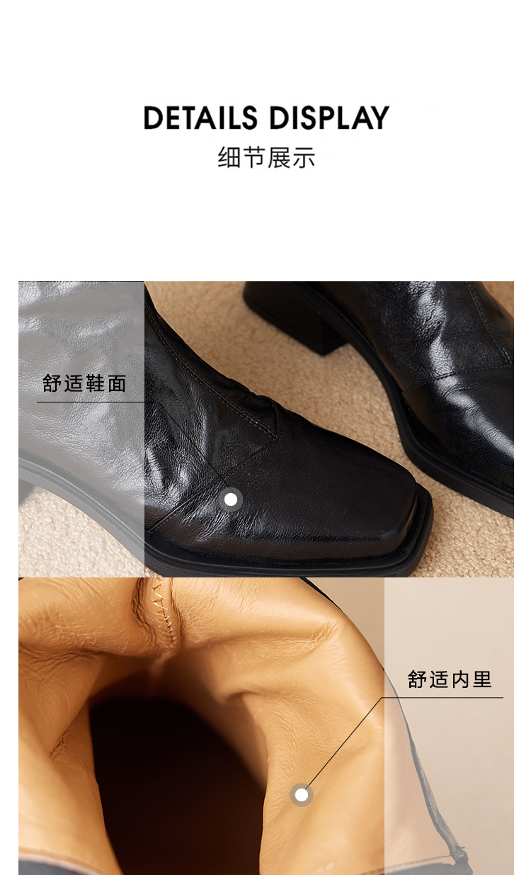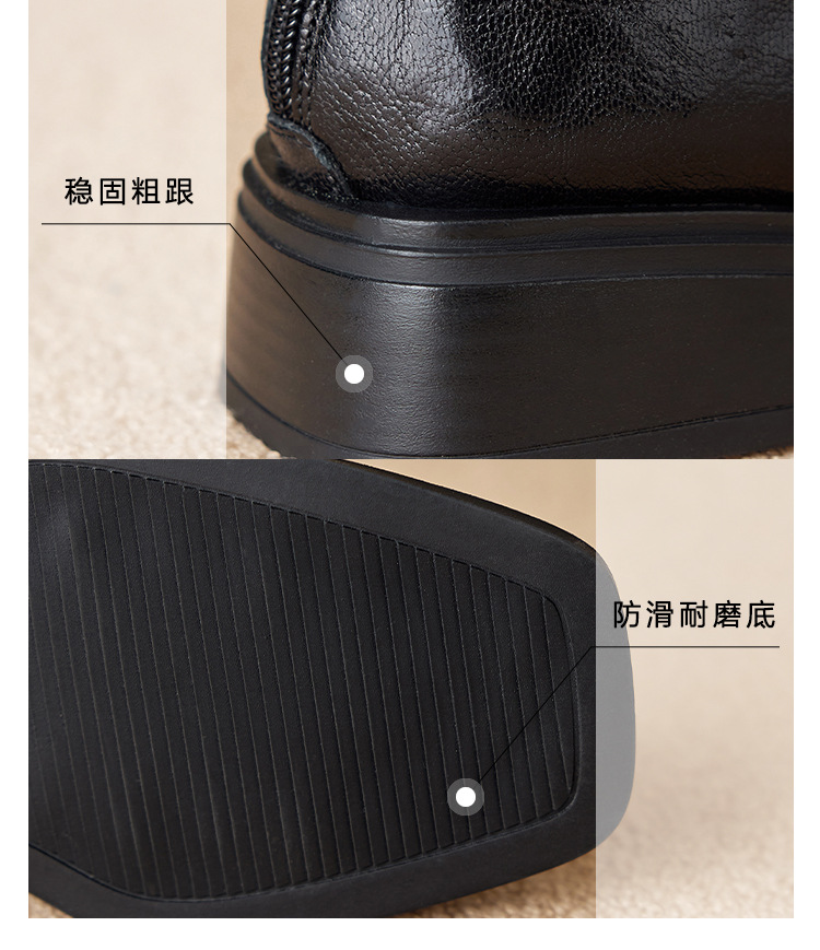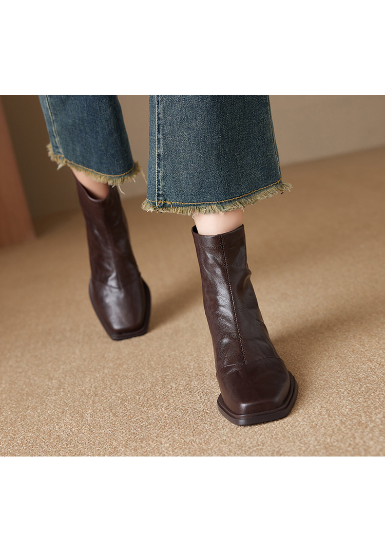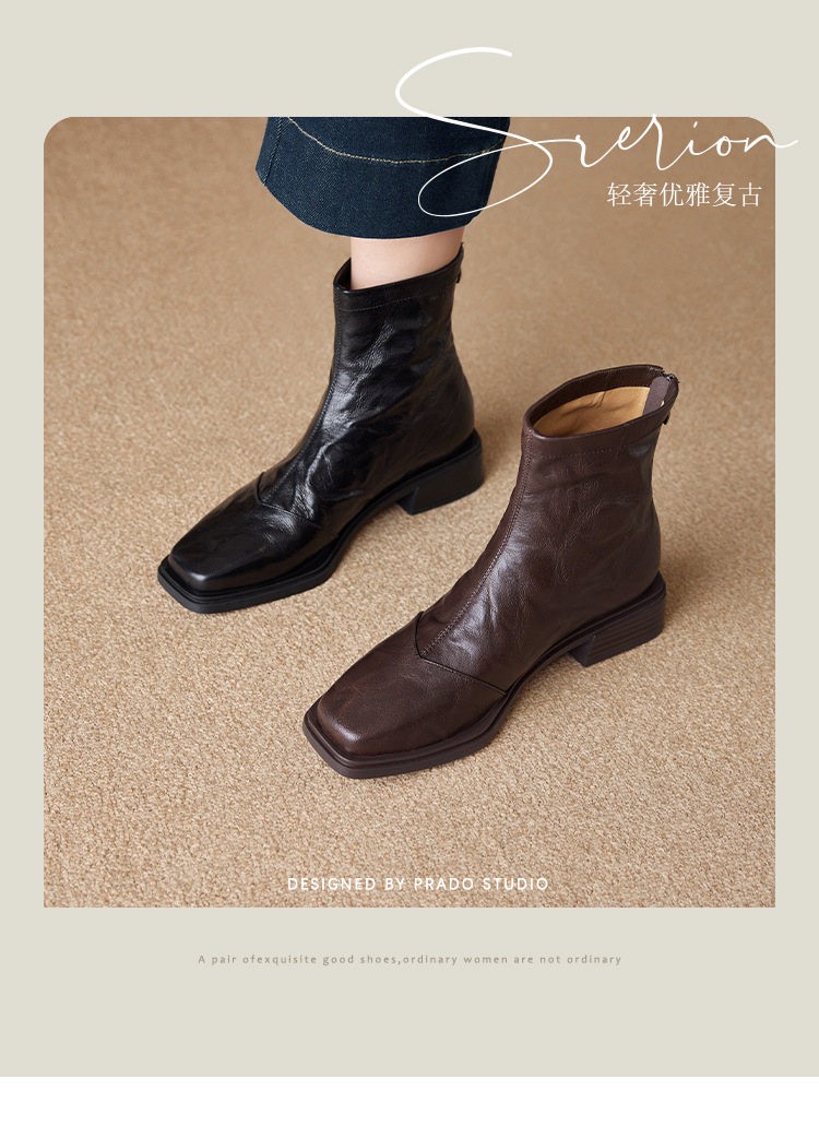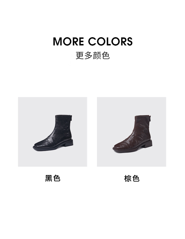 2025 신상 소가죽 부츠 스퀘어토 숏부츠 여성 가을 겨울 패션 레트로 주름 뒷지퍼 마틴부츠 슬림부츠