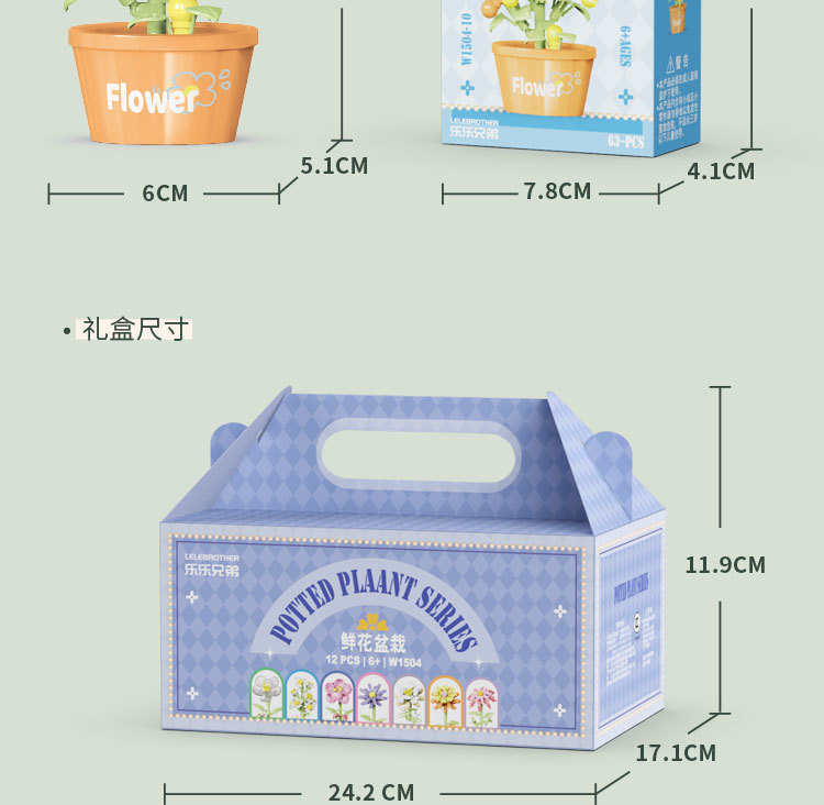 • W1504 꽃화분 휴대용 선물상자 (12개 세트)