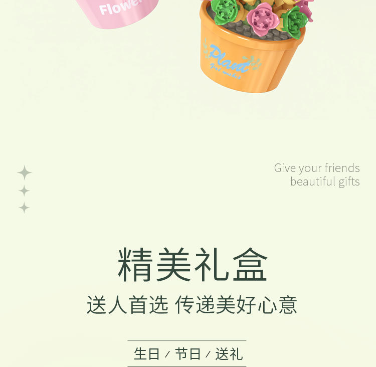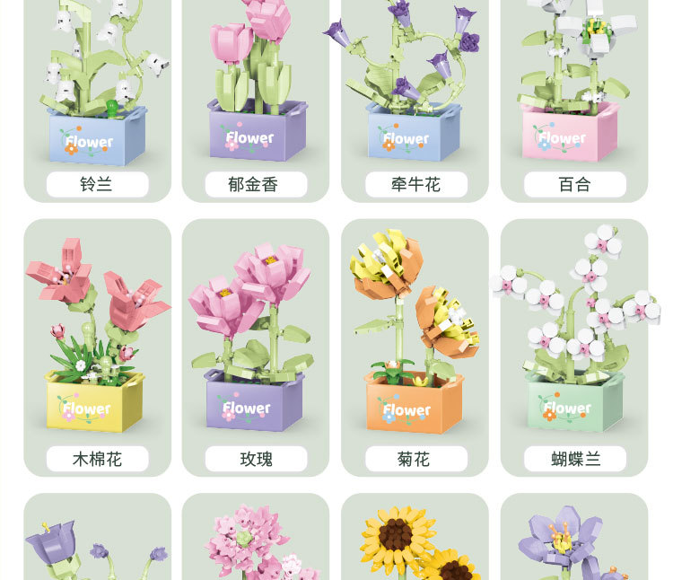 시뮬레이션 화분 꽃 레고 어린이 Diy 조립 건물 블록 마이크로 입자 창조적 인 데스크탑 건물 블록 꽃과 호환스토어 가기