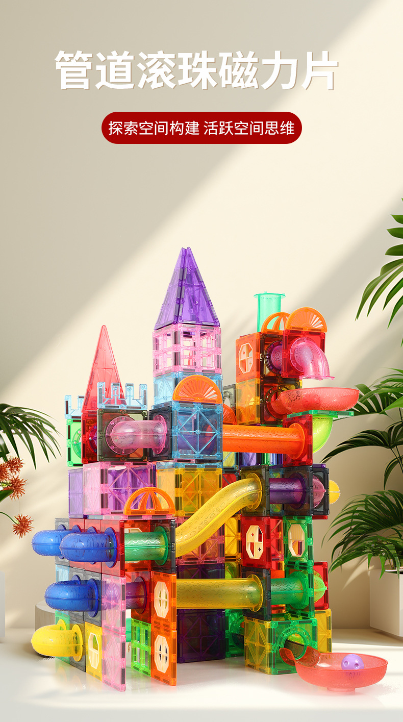 큰 공 파이프 컬러 창 자기 시트 강한 자기 파이프 세트 어린이 교육 자기 건물 블록 장난감스토어 가기