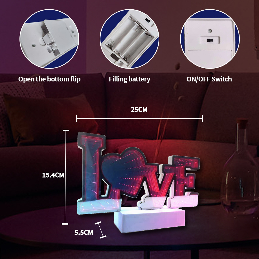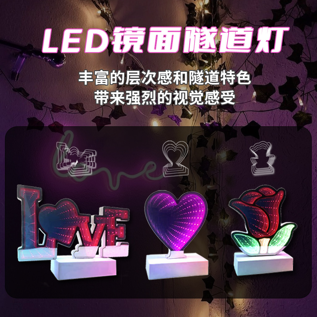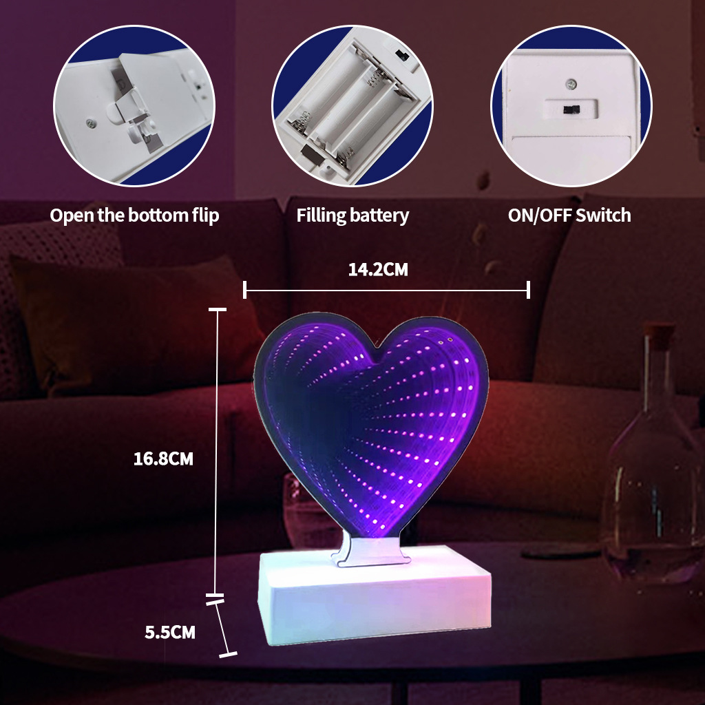 LED 미러 시공간 터널 빛 로맨틱 소녀 하트 모양의 장식 라이트 홀리데이 룸 레이아웃 드림 나이트 라이트