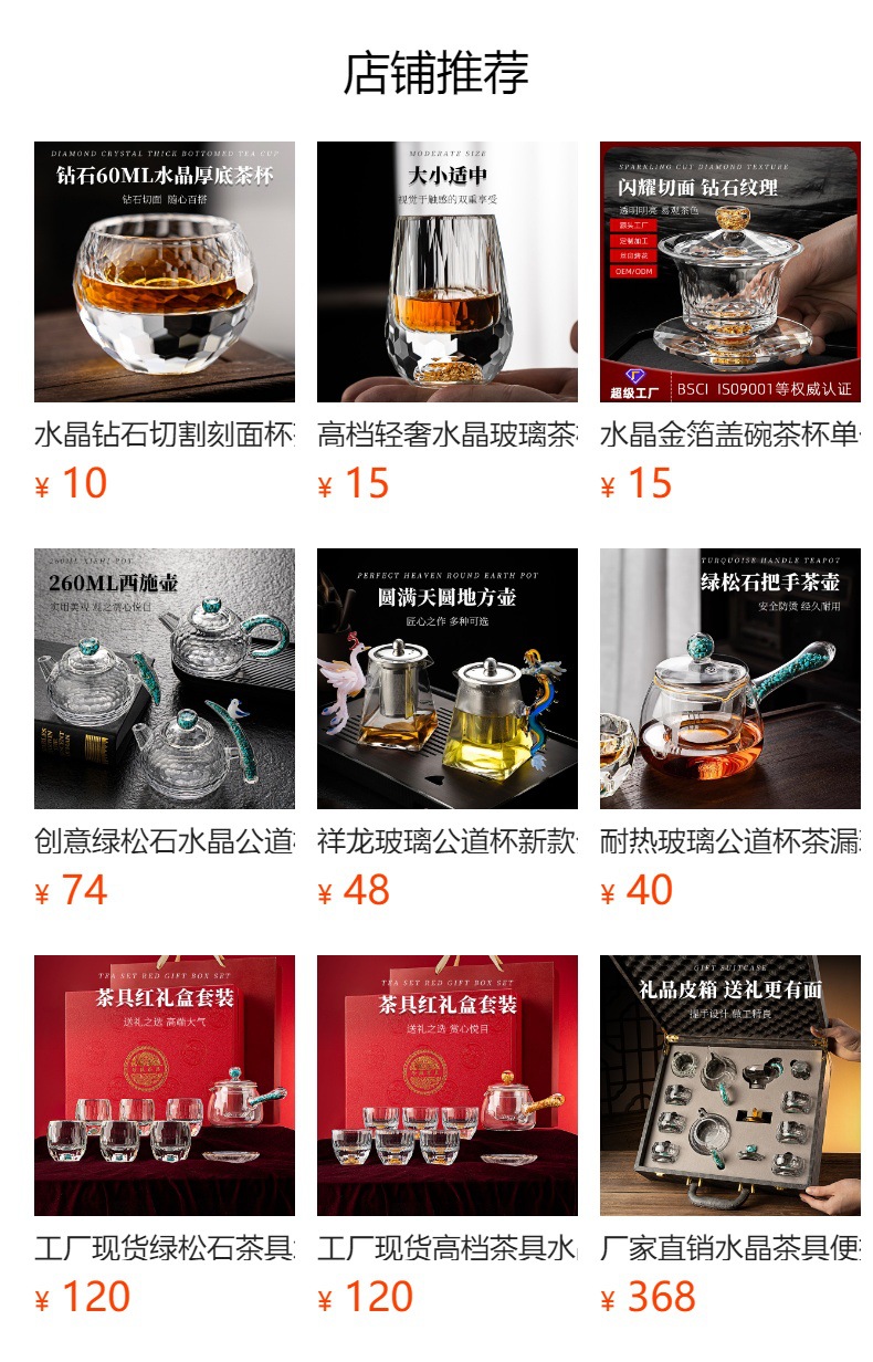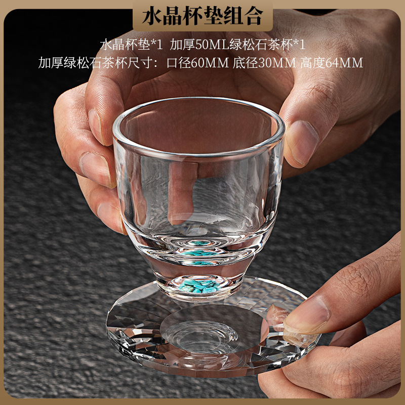 고급 크리스탈 유리 컬러 작은 차 컵 코스터 마스터 컵 게스트 컵 쿵푸 티 컵 내열 차 세트 세트스토어 가기