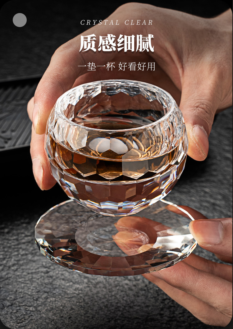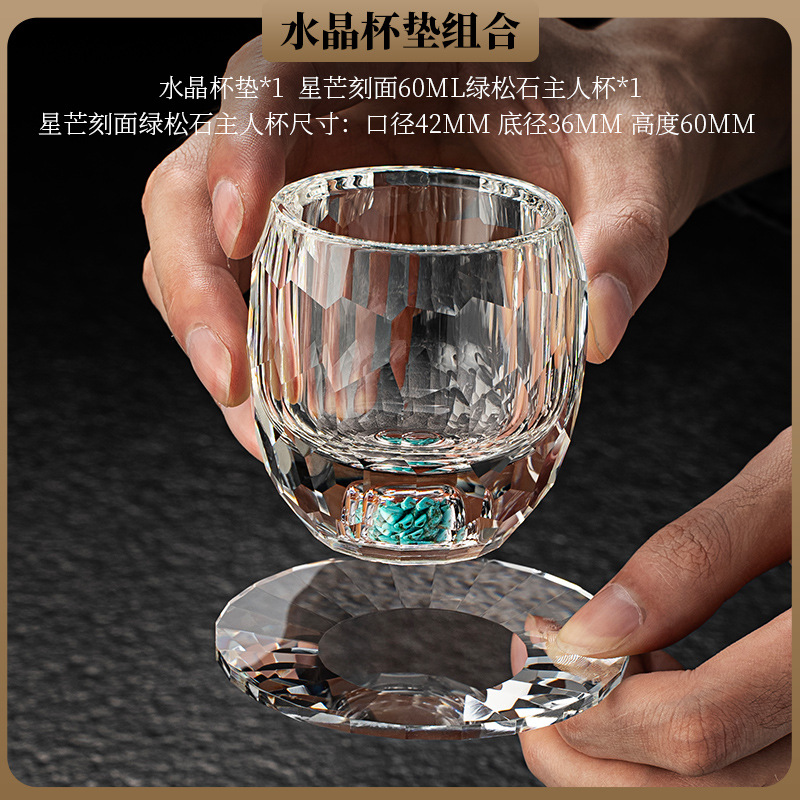 고급 크리스탈 유리 컬러 작은 차 컵 코스터 마스터 컵 게스트 컵 쿵푸 티 컵 내열 차 세트 세트