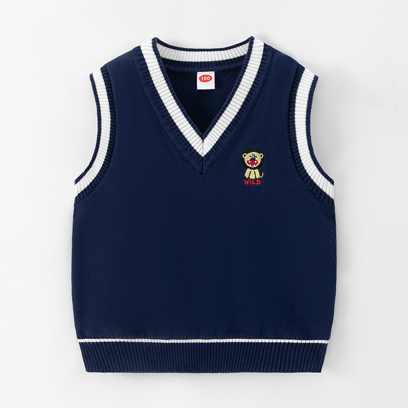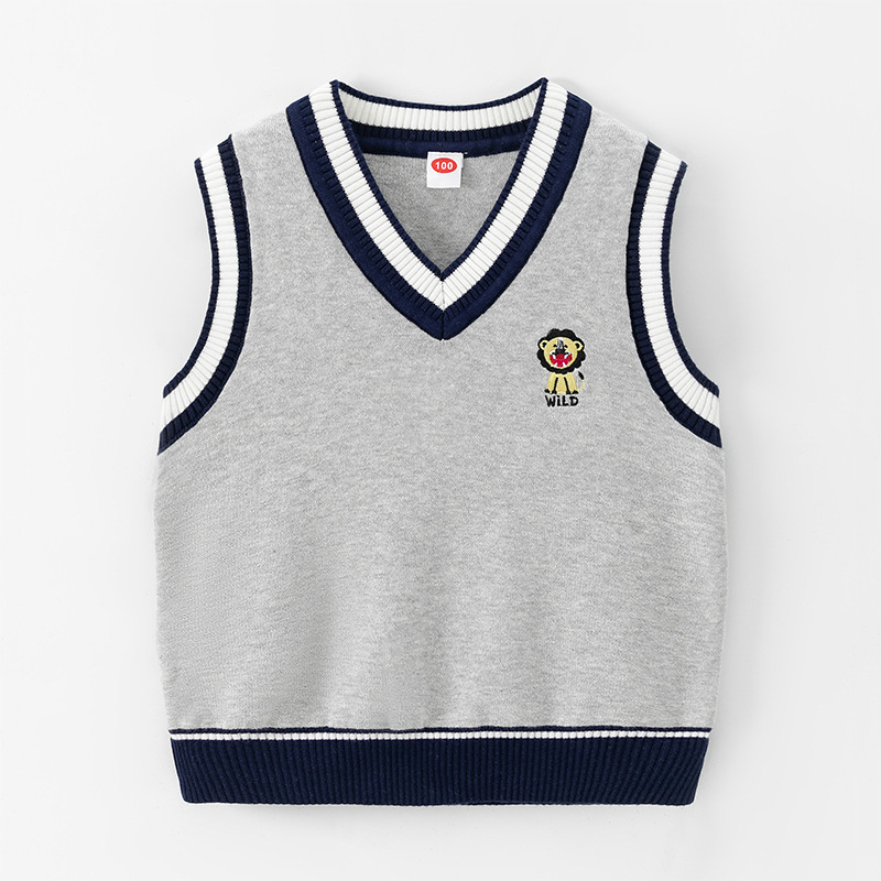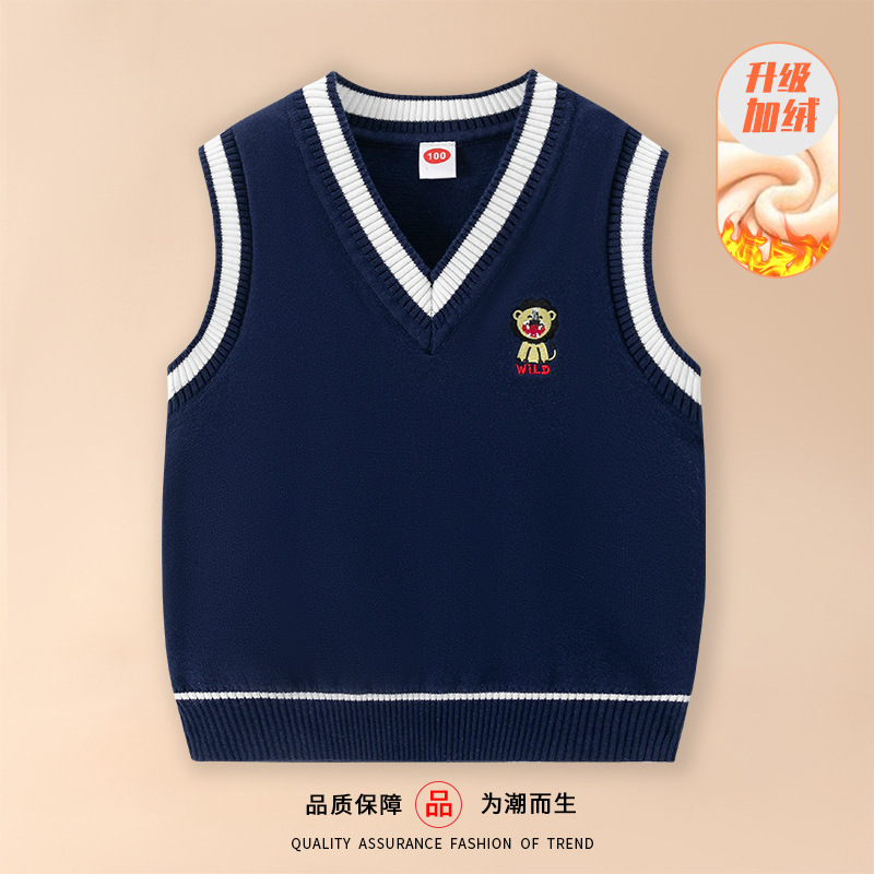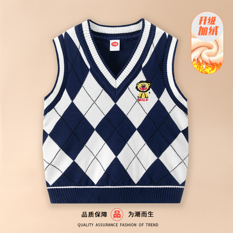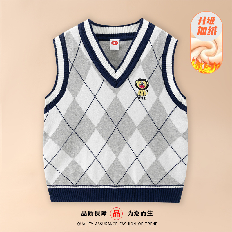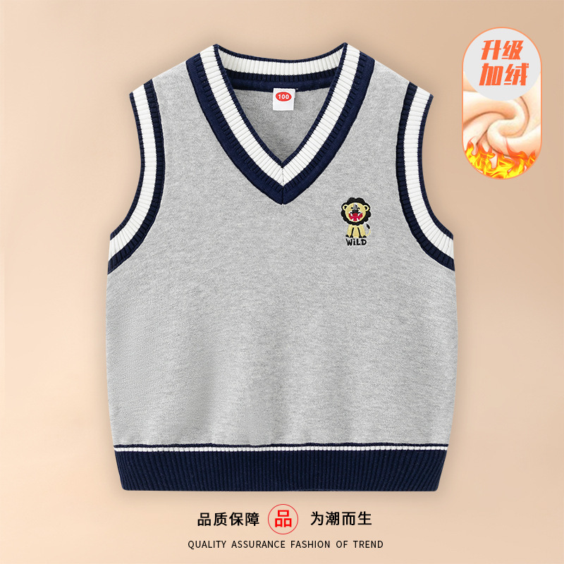 도매 남아용 이중 레이어 스웨터 조끼 플러스 플리스 안감 2026 봄 가을 중소형 아동 캐주얼 영국 스타일 조끼 민소매 조끼