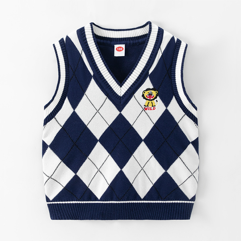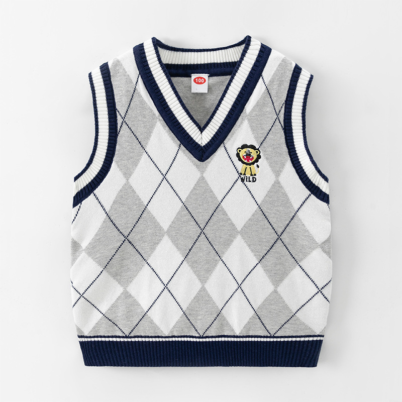 도매 남아용 이중 레이어 스웨터 조끼 플러스 플리스 안감 2026 봄 가을 중소형 아동 캐주얼 영국 스타일 조끼 민소매 조끼스토어 가기