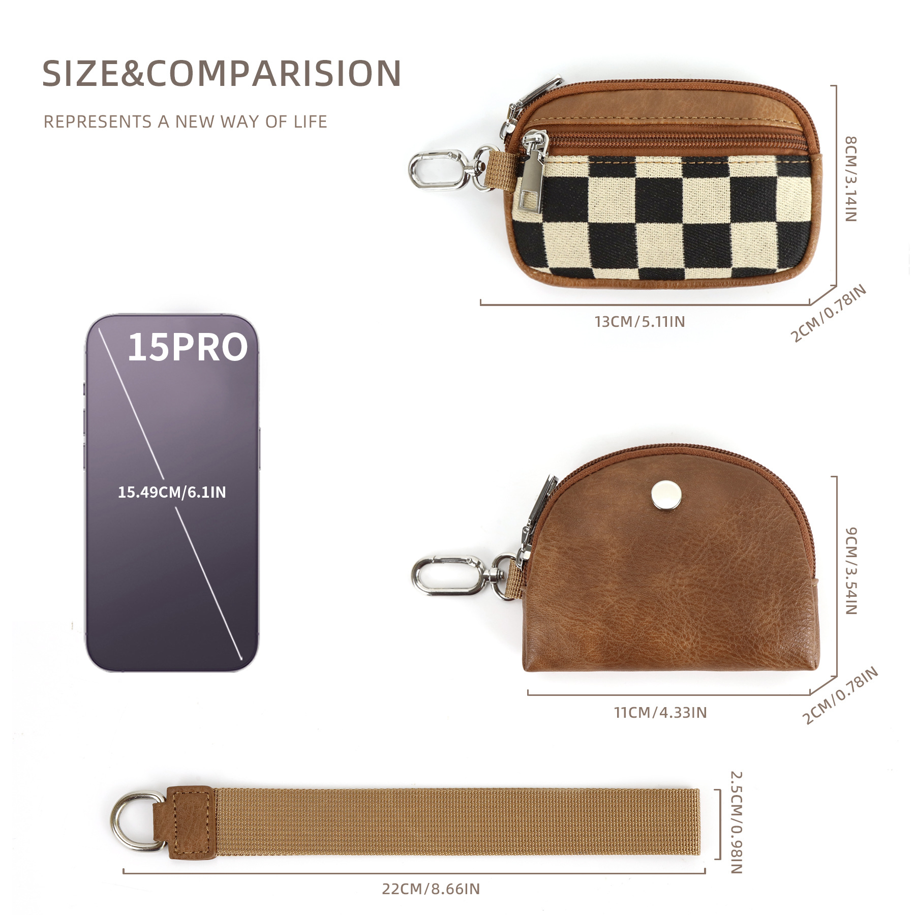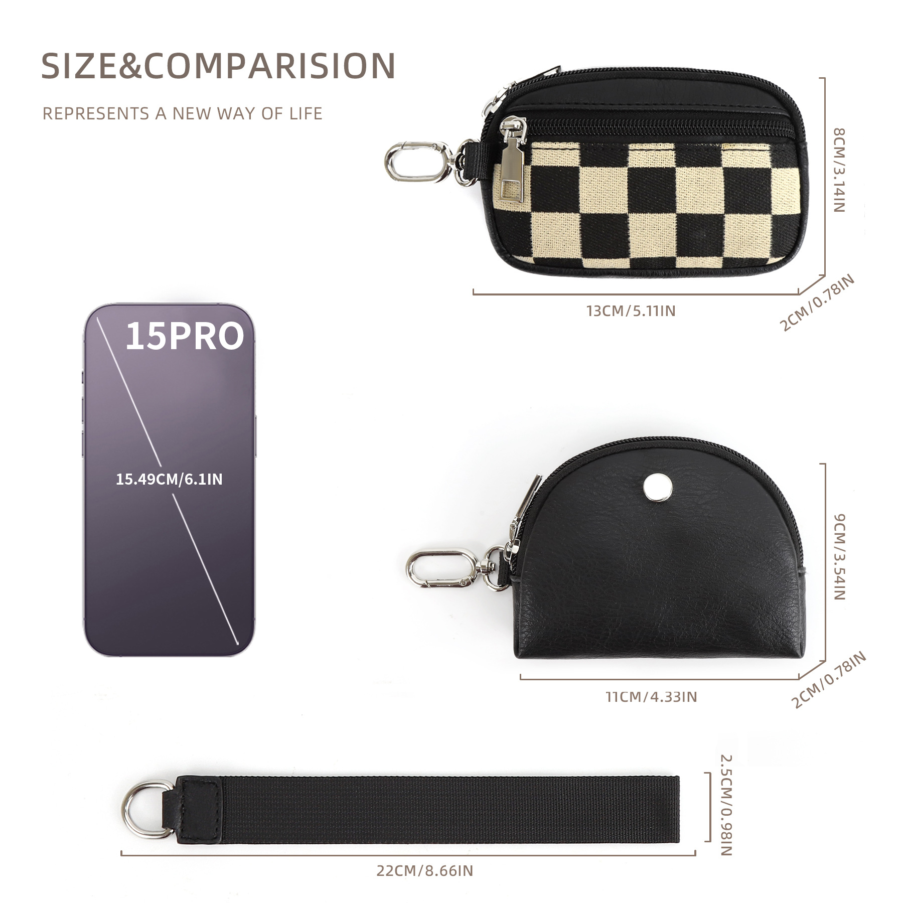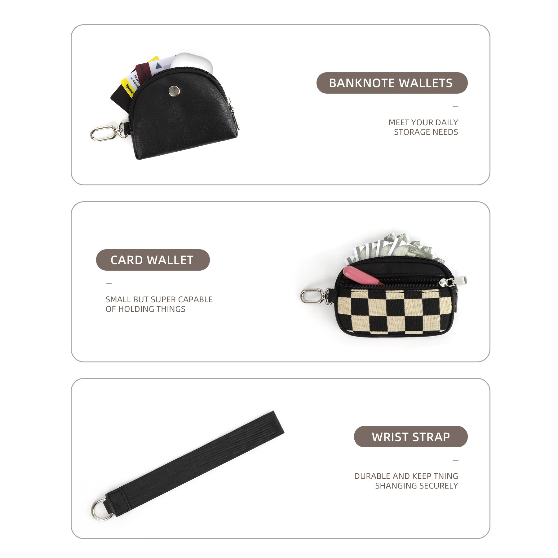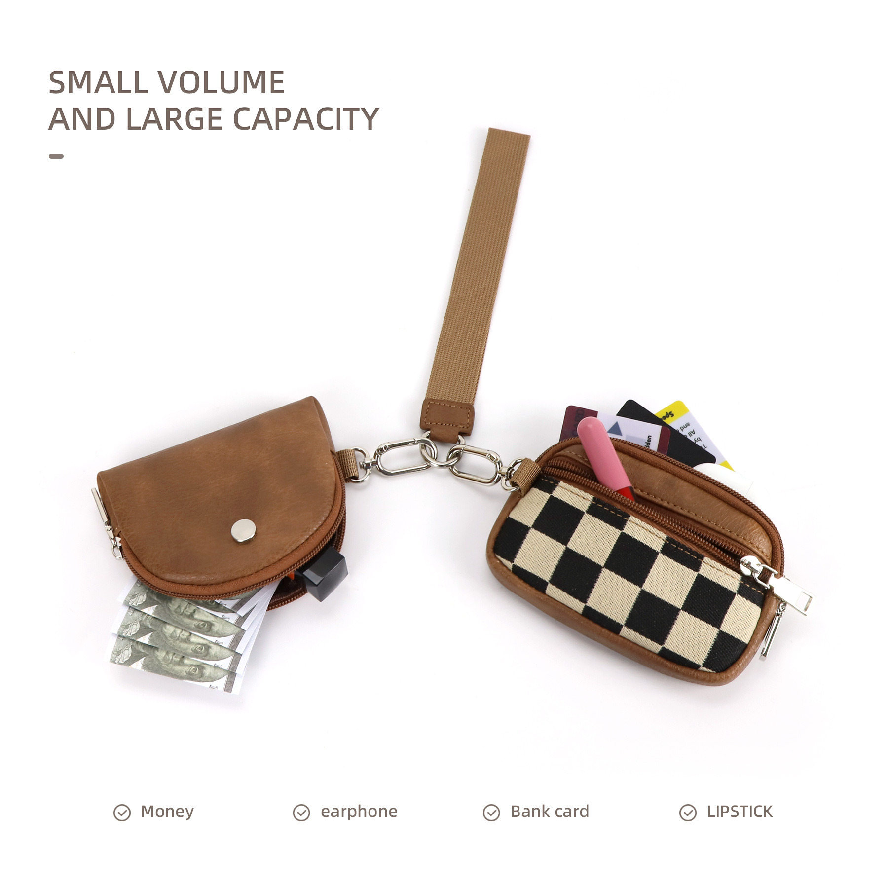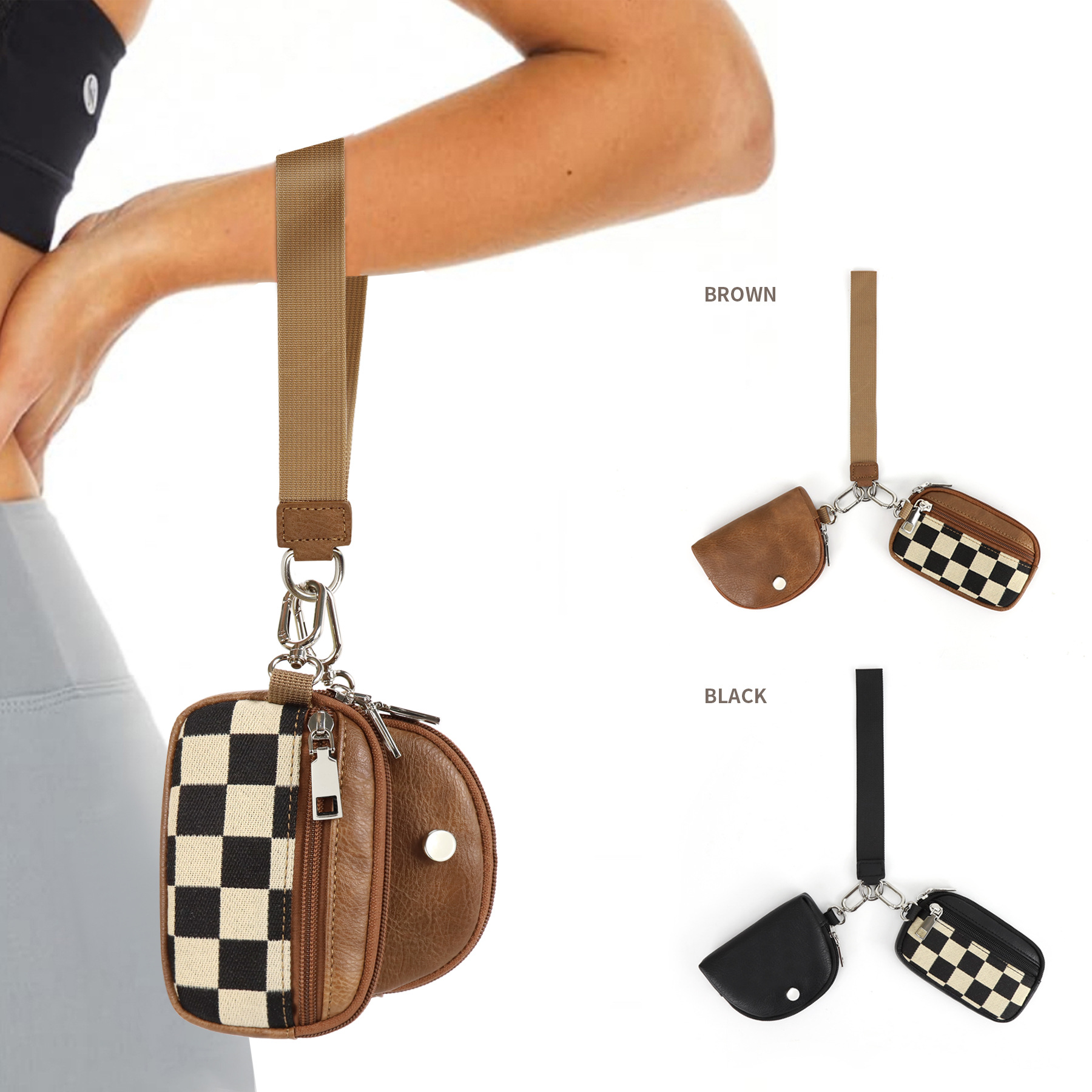 재고 룰루 체크 보드 격자 무늬 룰루 다기능 패션 손목 휴대용 은행 카드 슬롯 미니 동전 지갑