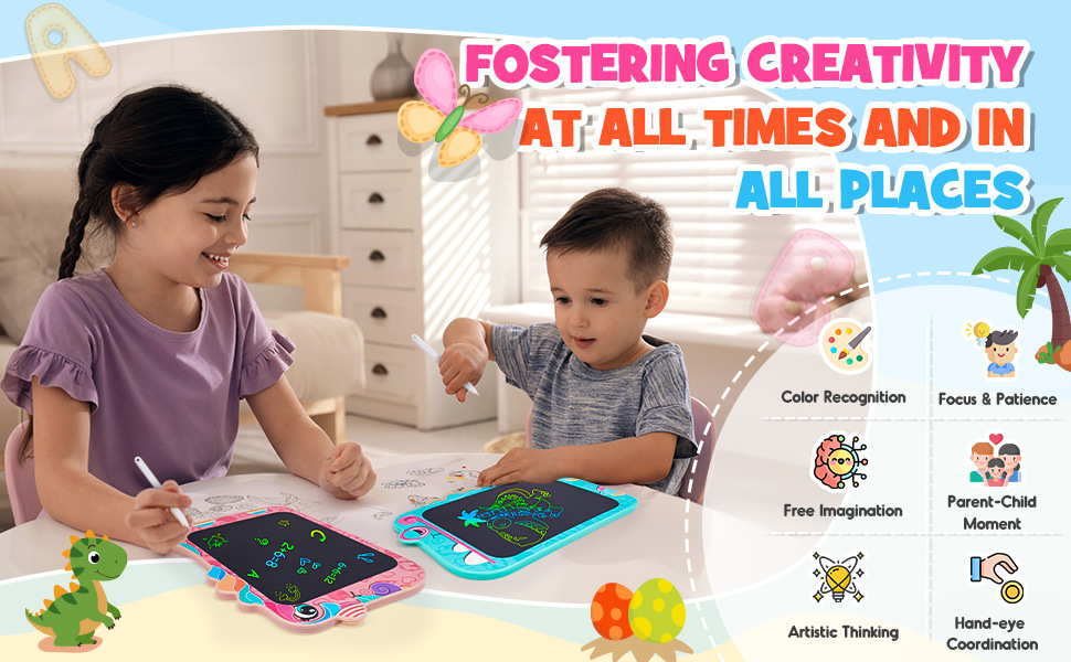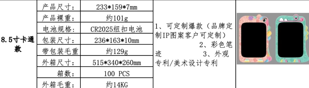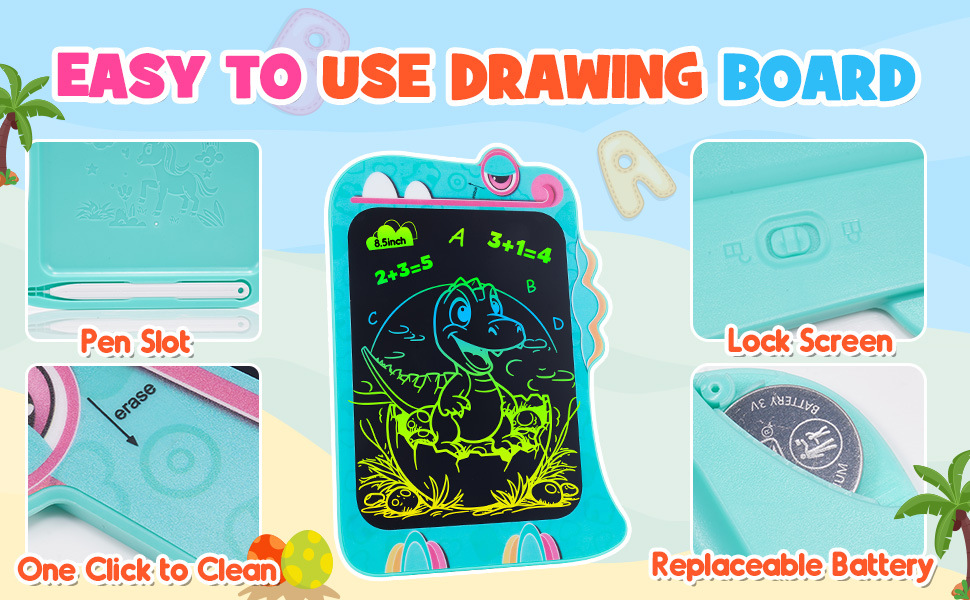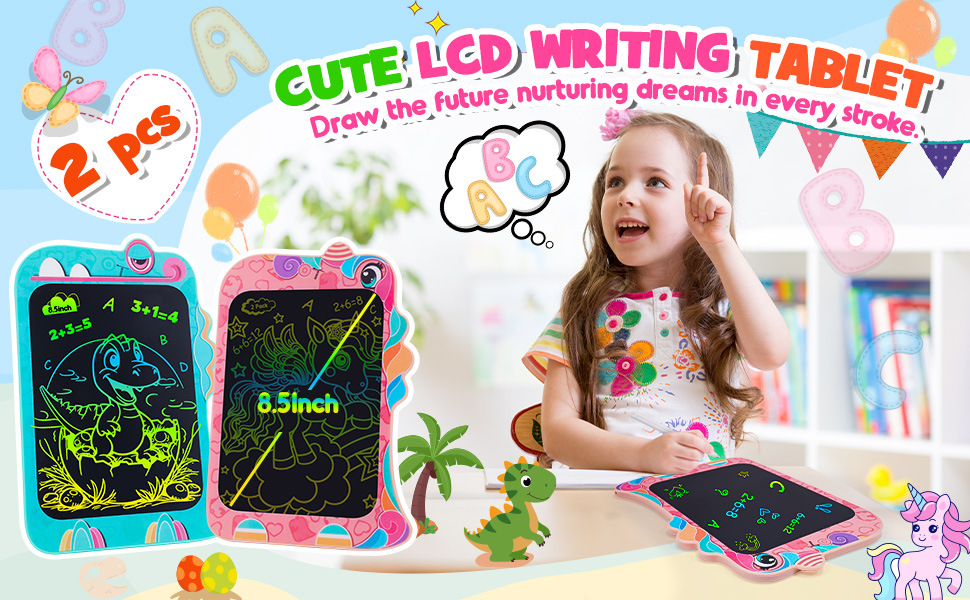 국경 새로운 8.5 인치 다채로운 만화 공룡 어린이 LCD LCD 드로잉 보드 손 필기 보드 제조 업체스토어 가기