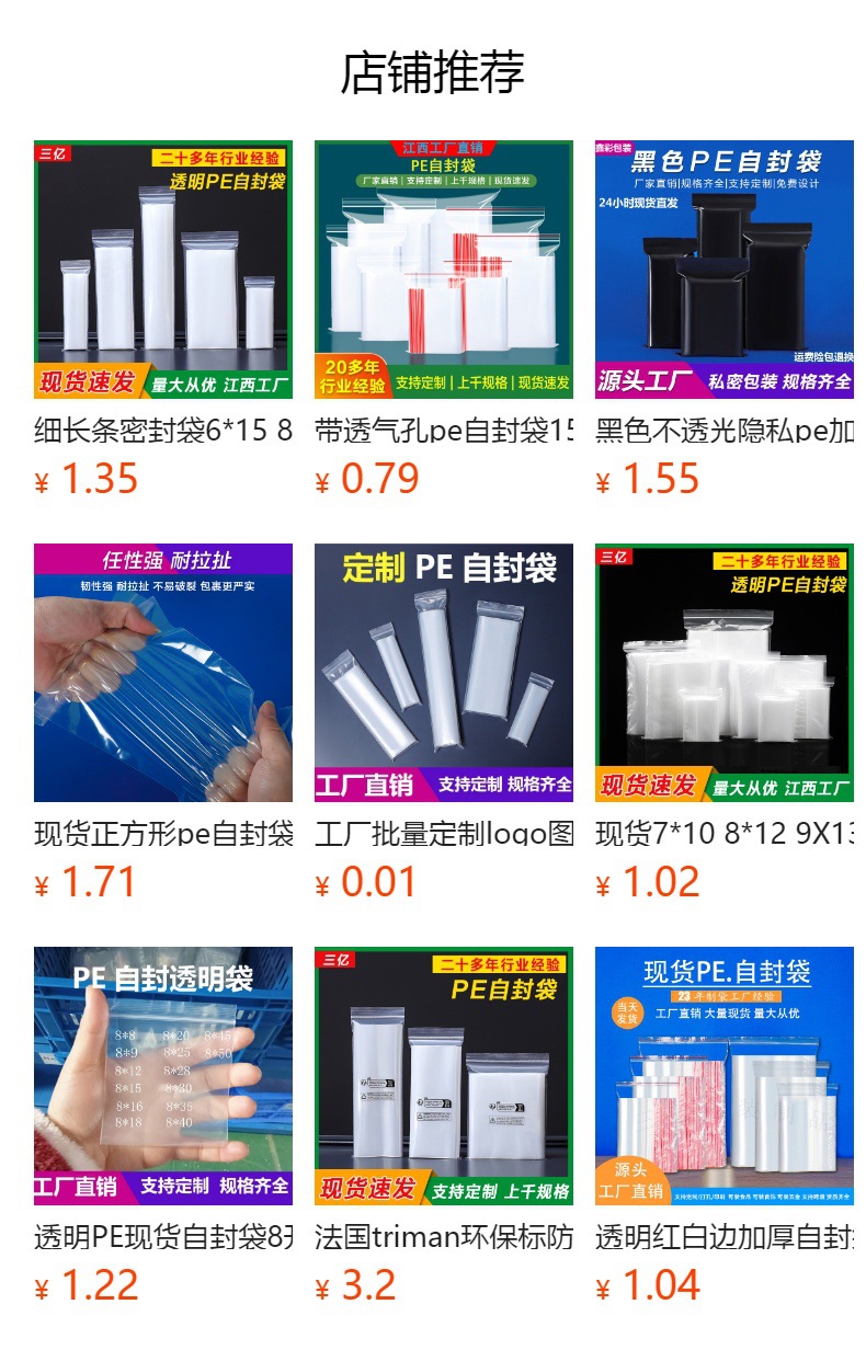 공장 재고 투명 pe 자체 밀봉 가방 정사이즈 사양 완전한 봉인 된 가방 포장 보석 두꺼운 봉인 된 포켓 도매스토어 가기