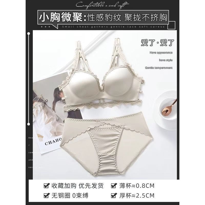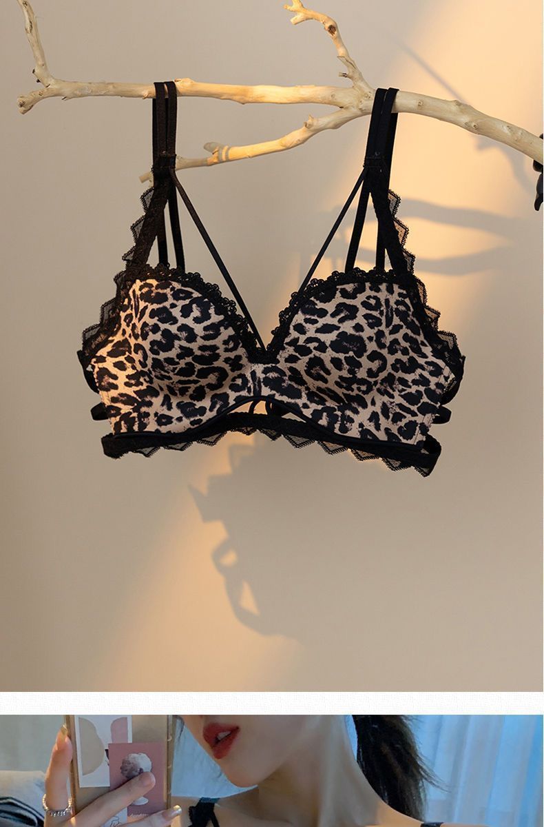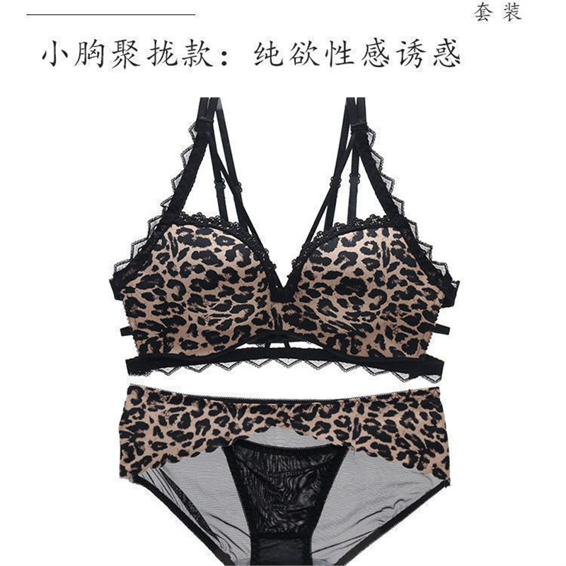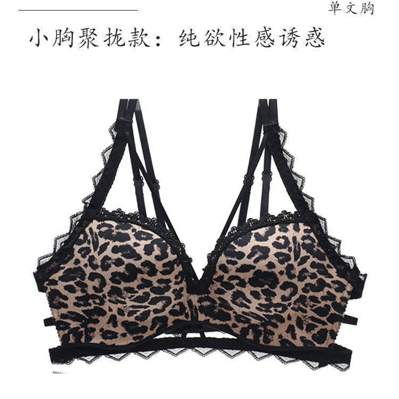 아름다운 등 속옷 여성의 섹시한 레오파드 무늬 두꺼운 작은 가슴 푸시 업 브래지어 비 스틸 링 할로우 플랫 가슴 대형 브래지어 세트스토어 가기