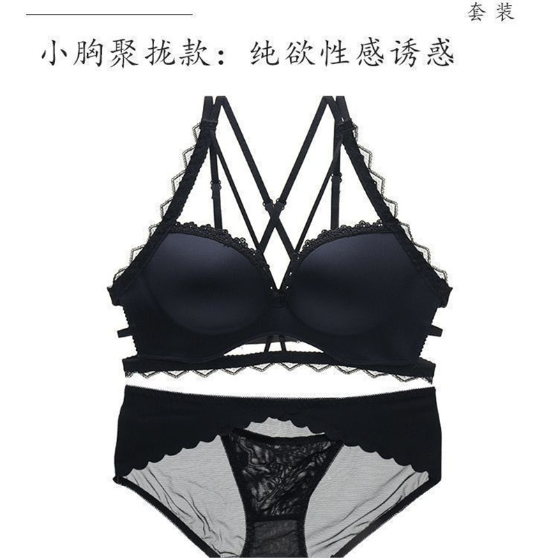 아름다운 등 속옷 여성의 섹시한 레오파드 무늬 두꺼운 작은 가슴 푸시 업 브래지어 비 스틸 링 할로우 플랫 가슴 대형 브래지어 세트
