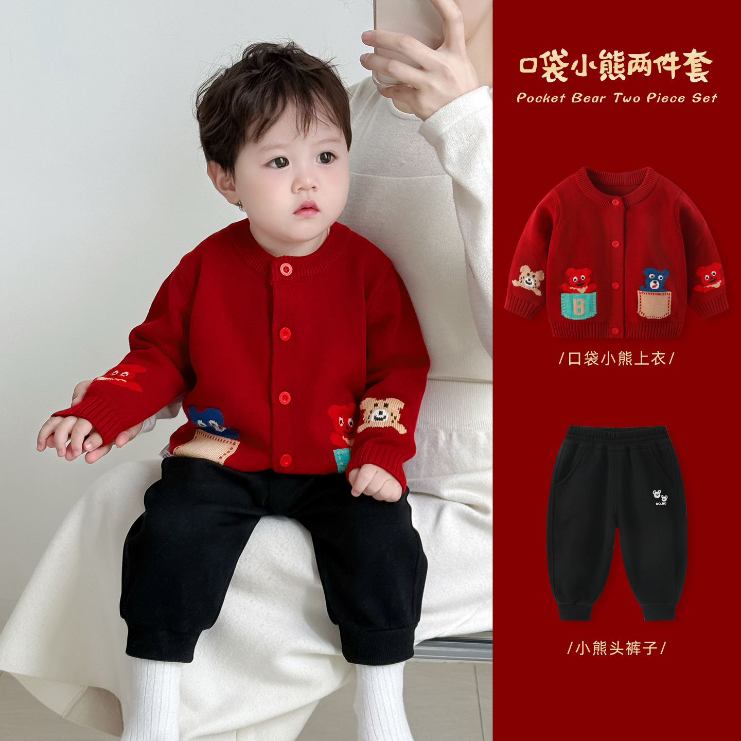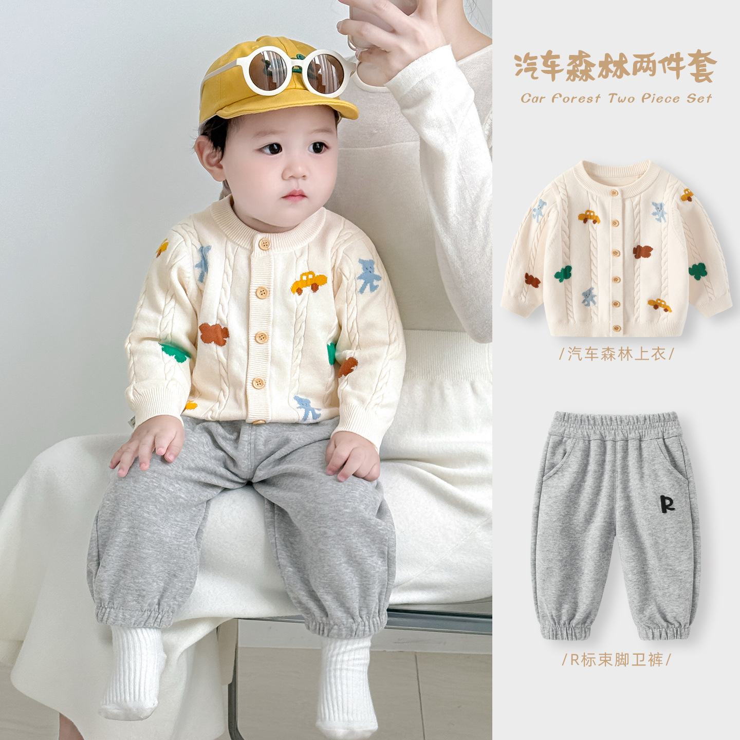 남아 스웨터 봄 가을 신상 남아 봄옷 투피스 세트 봄 아동복 세트 가디건 유아 코트스토어 가기