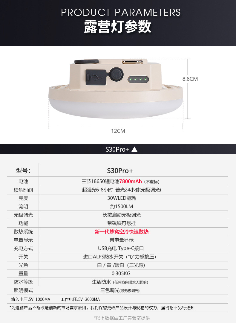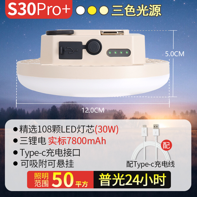 S30pro 충전식 캠핑 라이트 LED 캠핑 슈퍼 긴 배터리 수명 비상 조명 야외 조명 교수형 텐트 라이트 캠프
