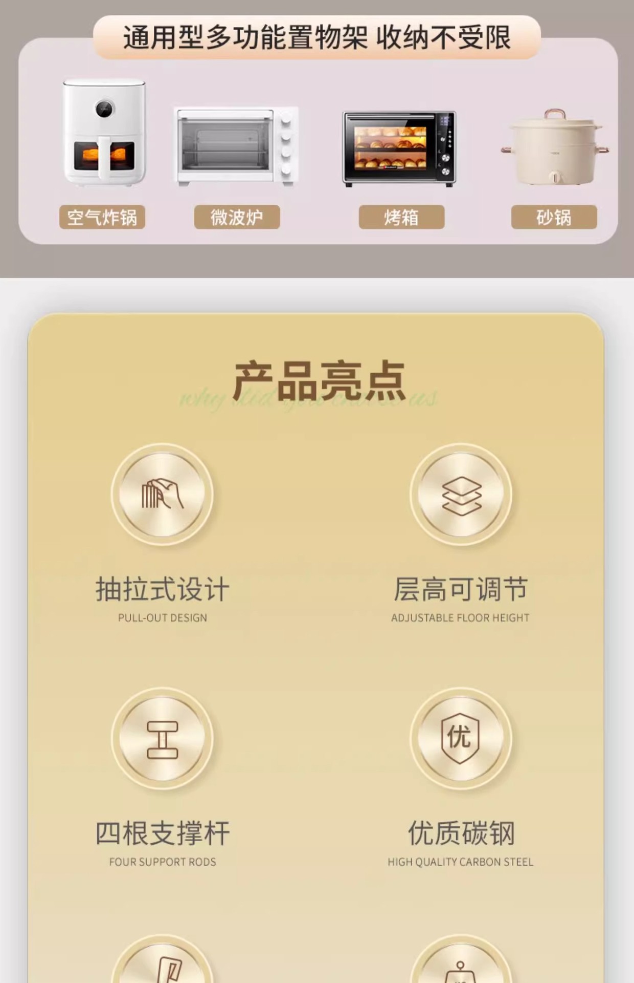 전자 레인지 스토리지 랙 주방 카운터 탑 다기능 데스크탑 레이어드 에어 프라이어 라이스 쿠커 오븐 스토리지 랙