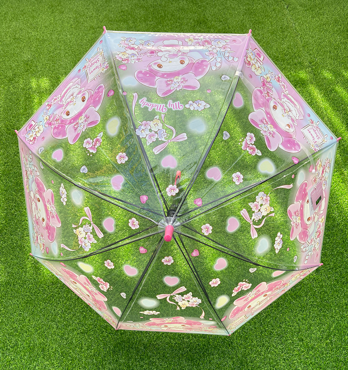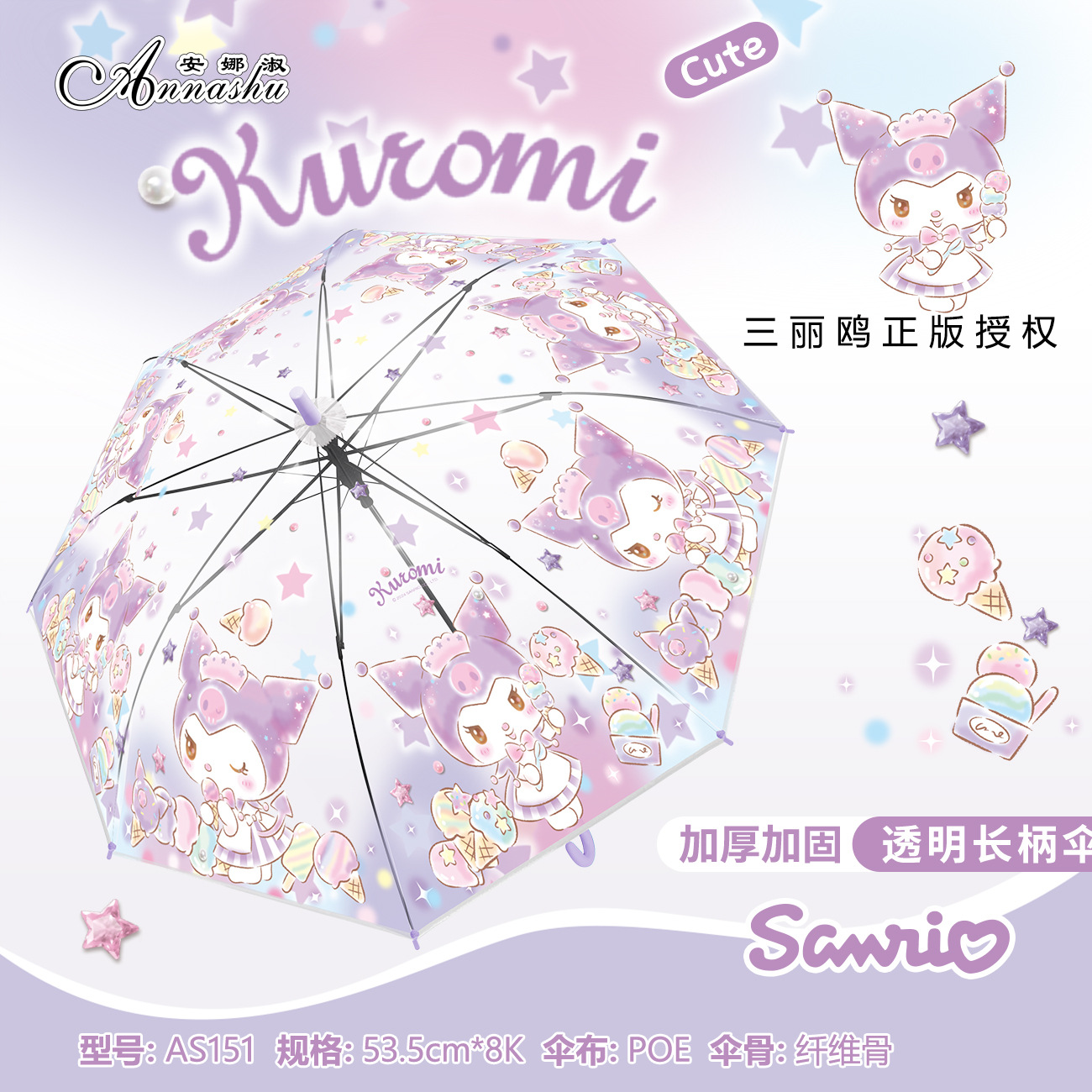 정품 산리오 우산 어린이 친환경 우산 귀여운 만화 쿠로미 스트레이트 롱 핸들 자동 투명 우산