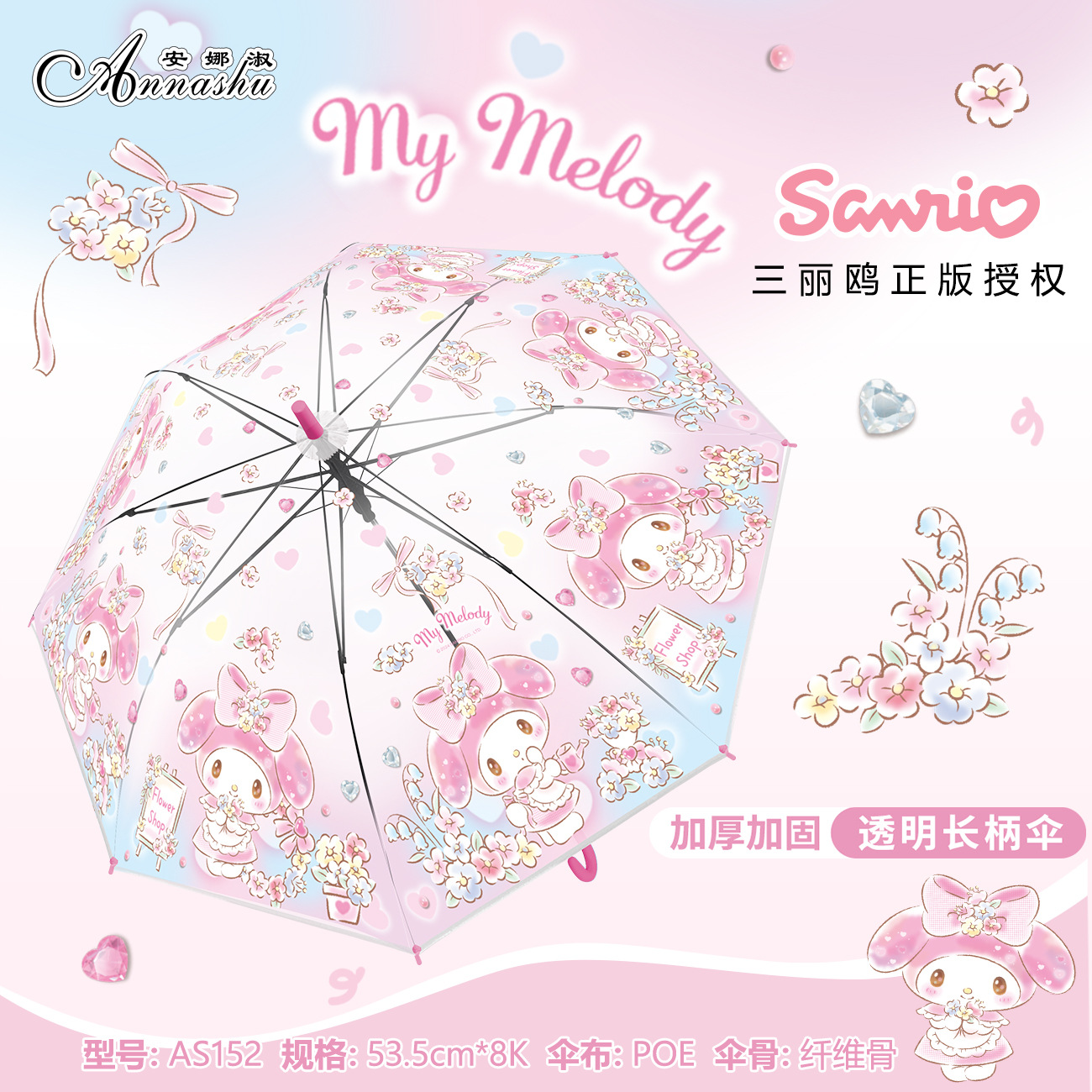 정품 산리오 우산 어린이 친환경 우산 귀여운 만화 쿠로미 스트레이트 롱 핸들 자동 투명 우산스토어 가기