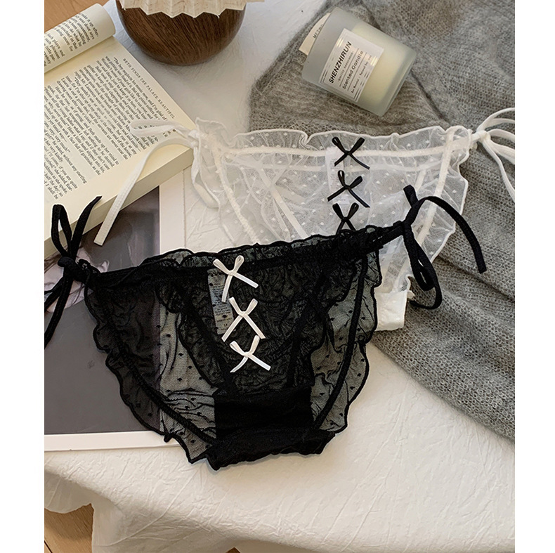 새로운 스타일 레이스 업 속옷 여성의 낮은 허리 순수한 소녀의 레이스 거즈 편안한 소금 달콤한 탄성 통기성 바지스토어 가기