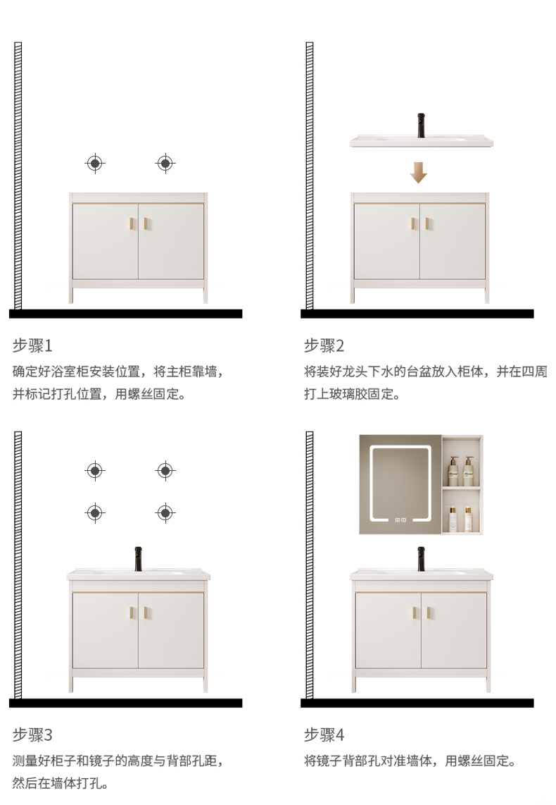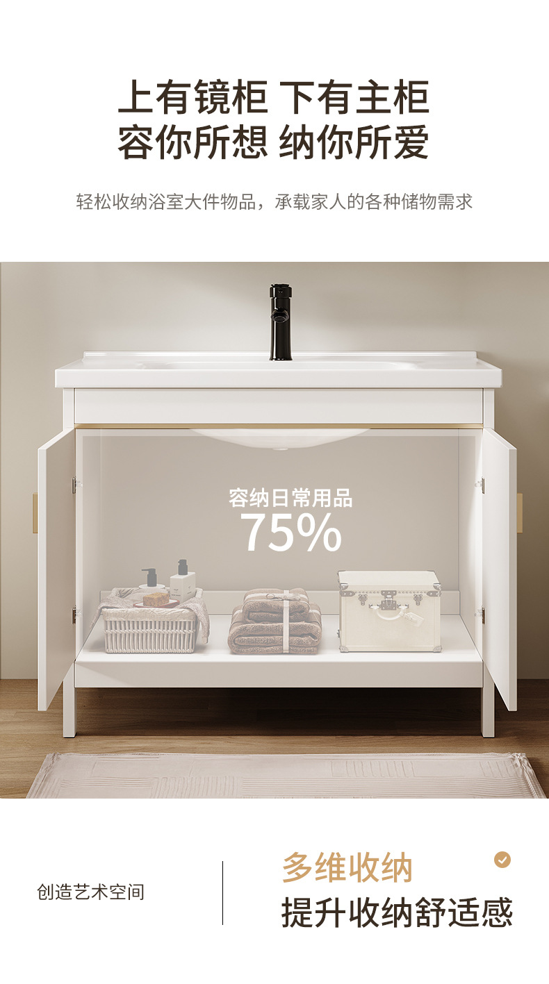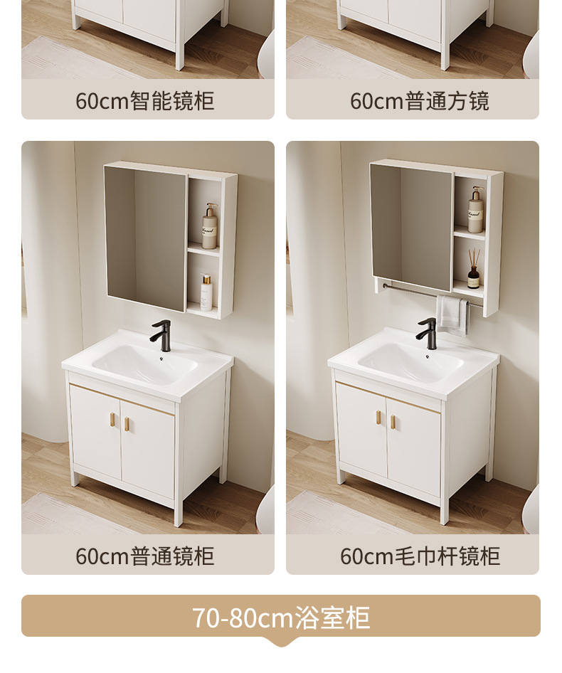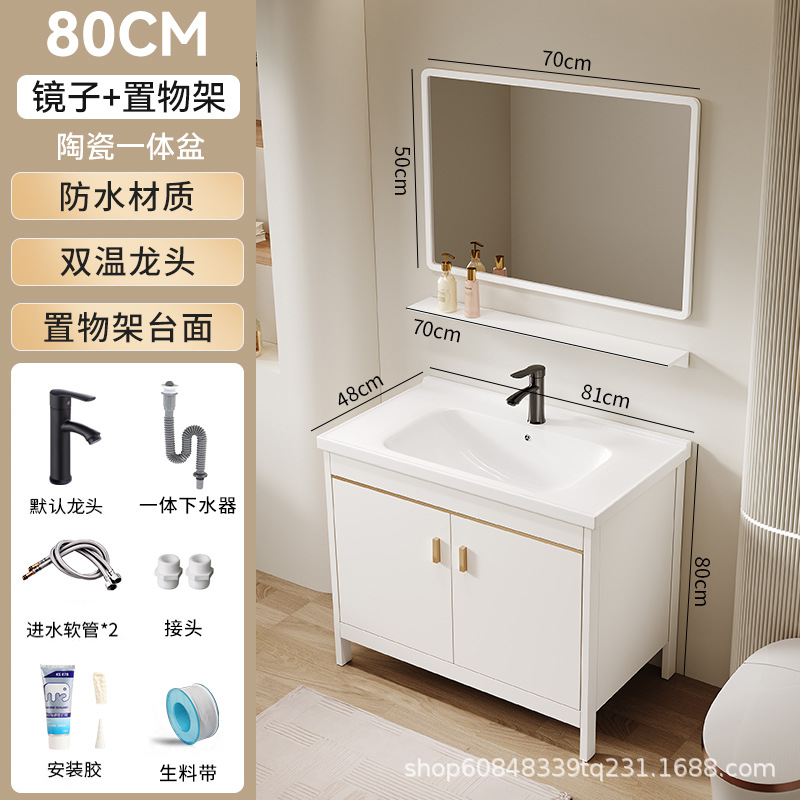 • 80CM 플로어 스탠딩 세라믹 세면대 캐비닛 [일반 거울 캐비닛]
