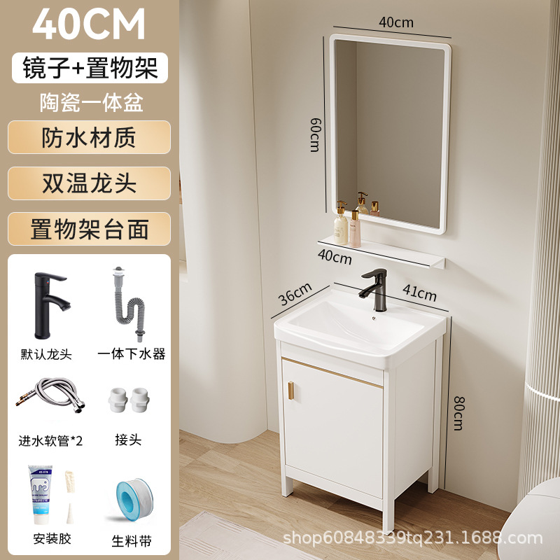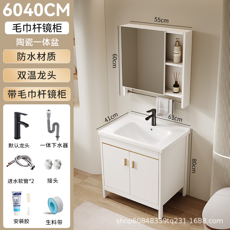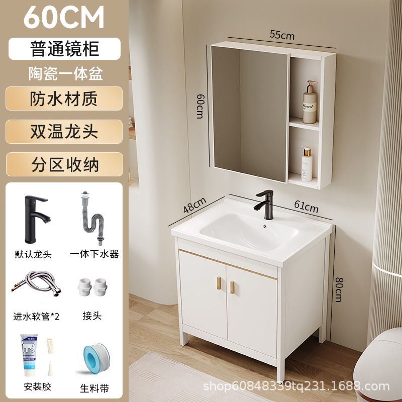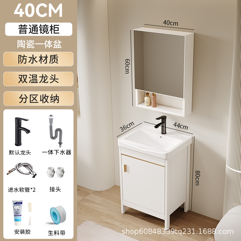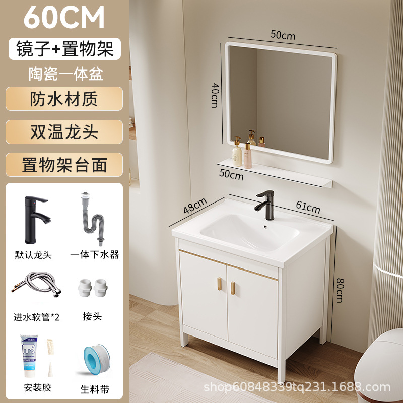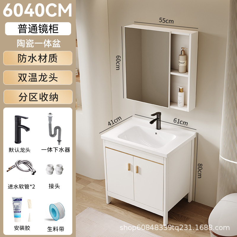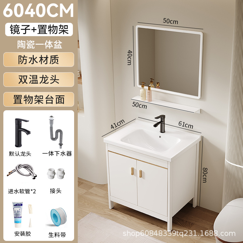 • 60*40CM 플로어 스탠딩 세라믹 세면대 캐비닛 [일반 거울 캐비닛]