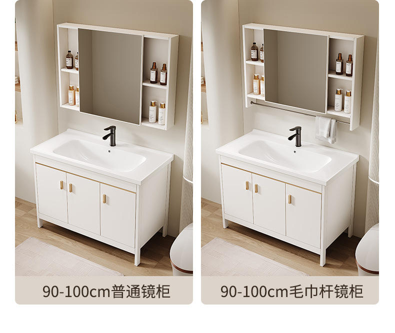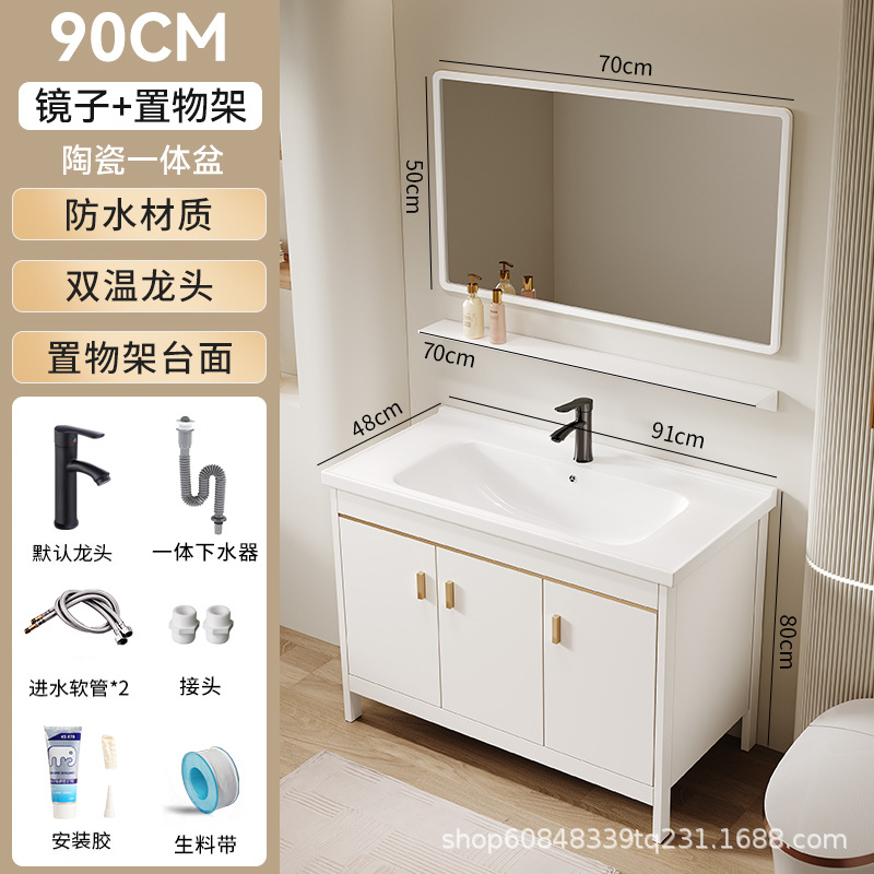 • 90CM 플로어 스탠딩 세라믹 세면대 캐비닛 [일반 거울 캐비닛]