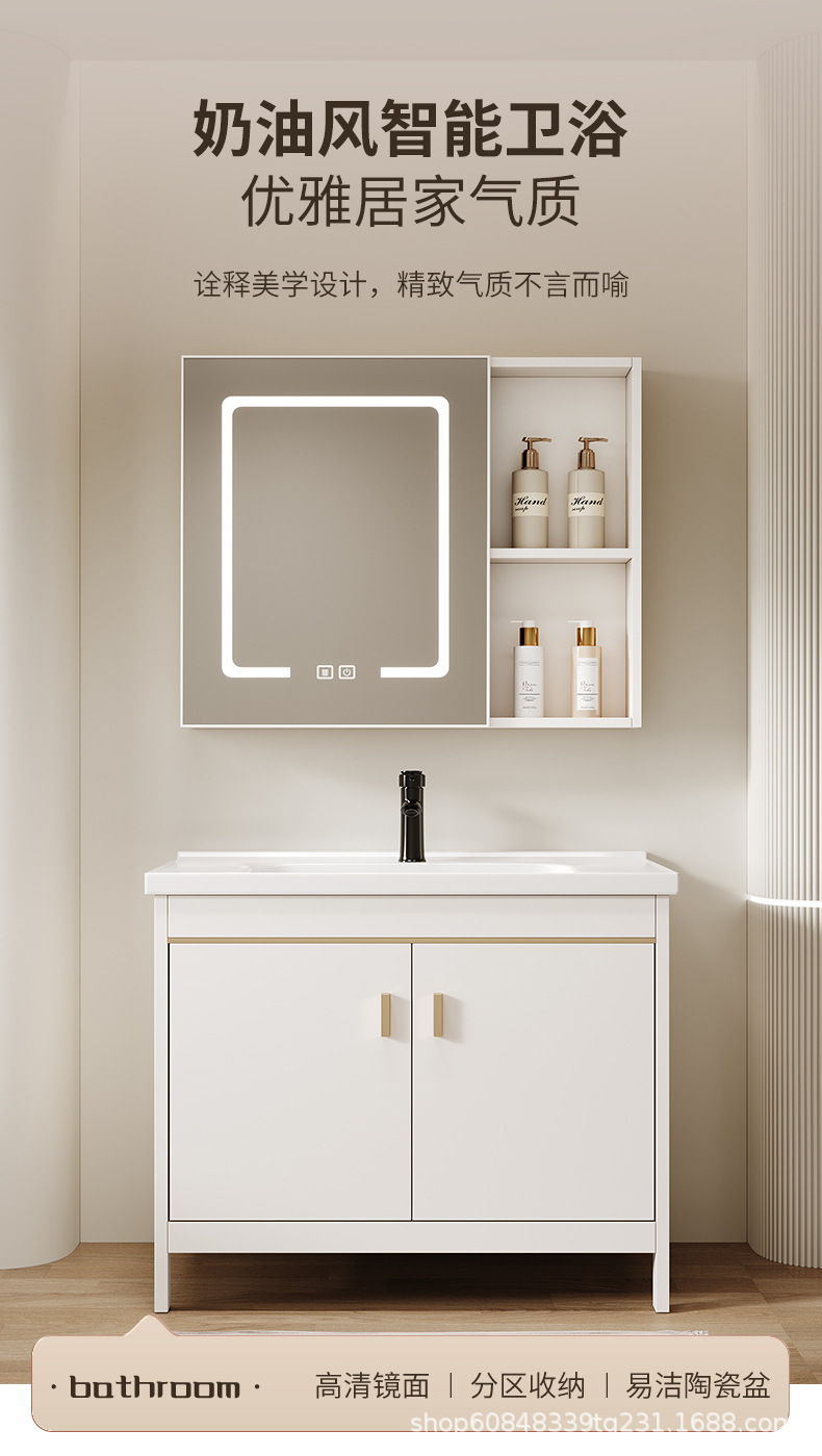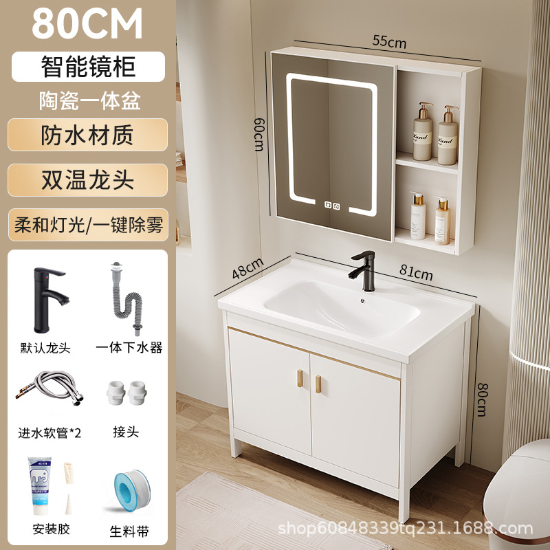 • 80CM 플로어 스탠딩 세라믹 세면대 캐비닛 [스마트 거울 캐비닛]