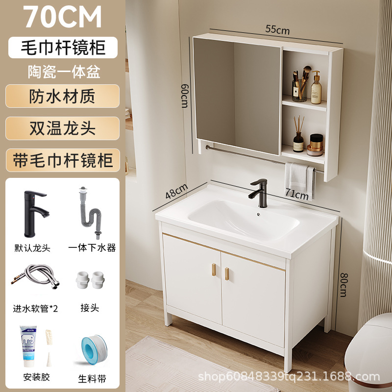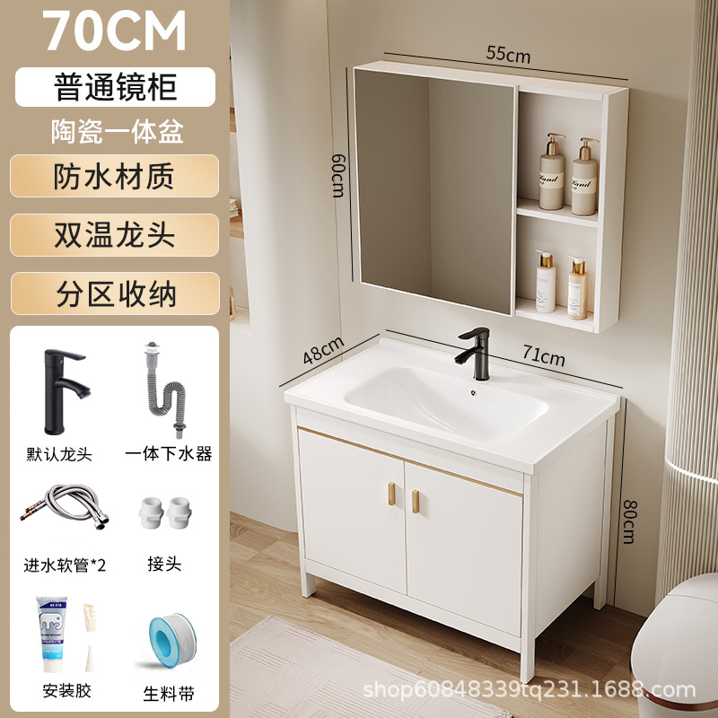 • 70CM 플로어 스탠딩 세라믹 세면대 캐비닛 [일반 거울 캐비닛]