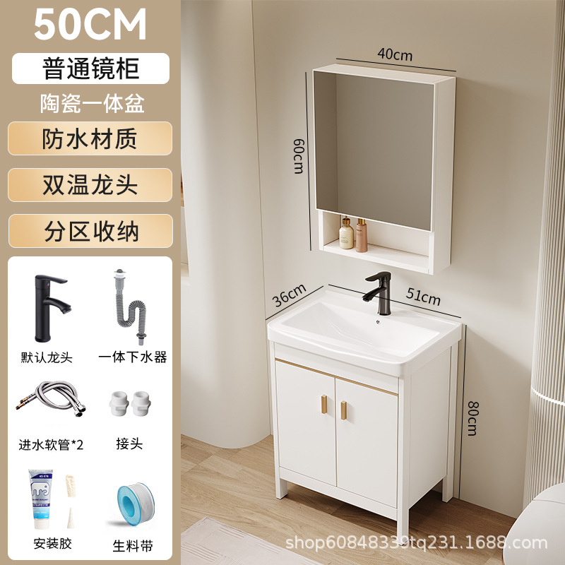 • 51CM 플로어 스탠딩 세라믹 세면대 캐비닛 [일반 거울 캐비닛]