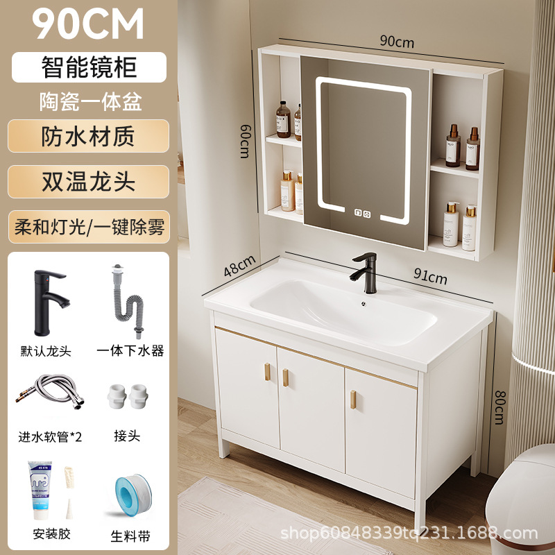 • 90CM 플로어 스탠딩 세라믹 세면대 캐비닛 [스마트 거울 캐비닛]