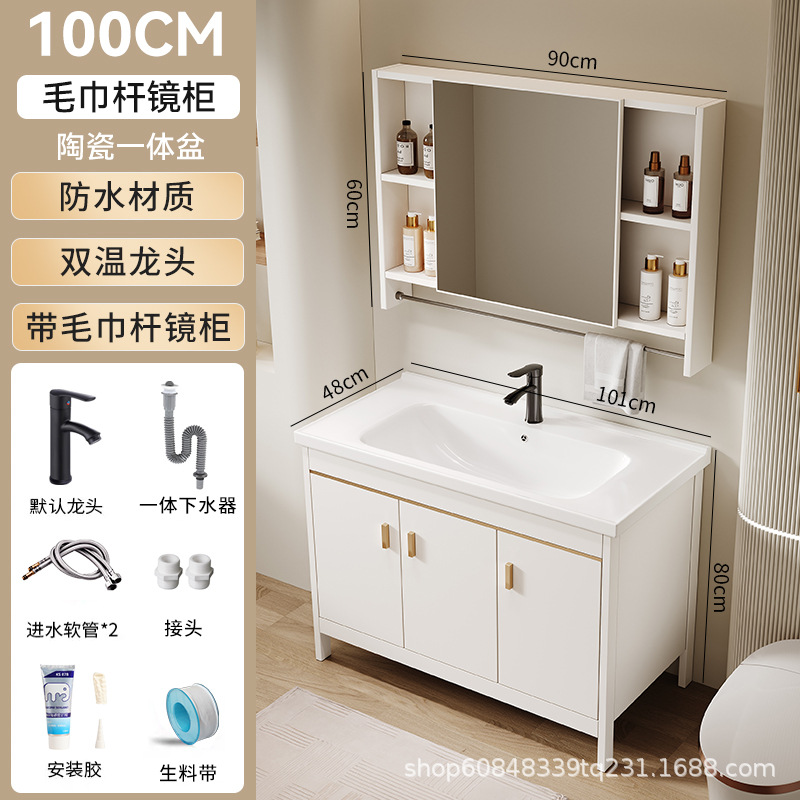 공간 알루미늄 세탁 캐비닛 발코니 세탁 탱크 풀 세라믹 통합 세탁기 분지 바닥 욕실 캐비닛 조합 템플릿