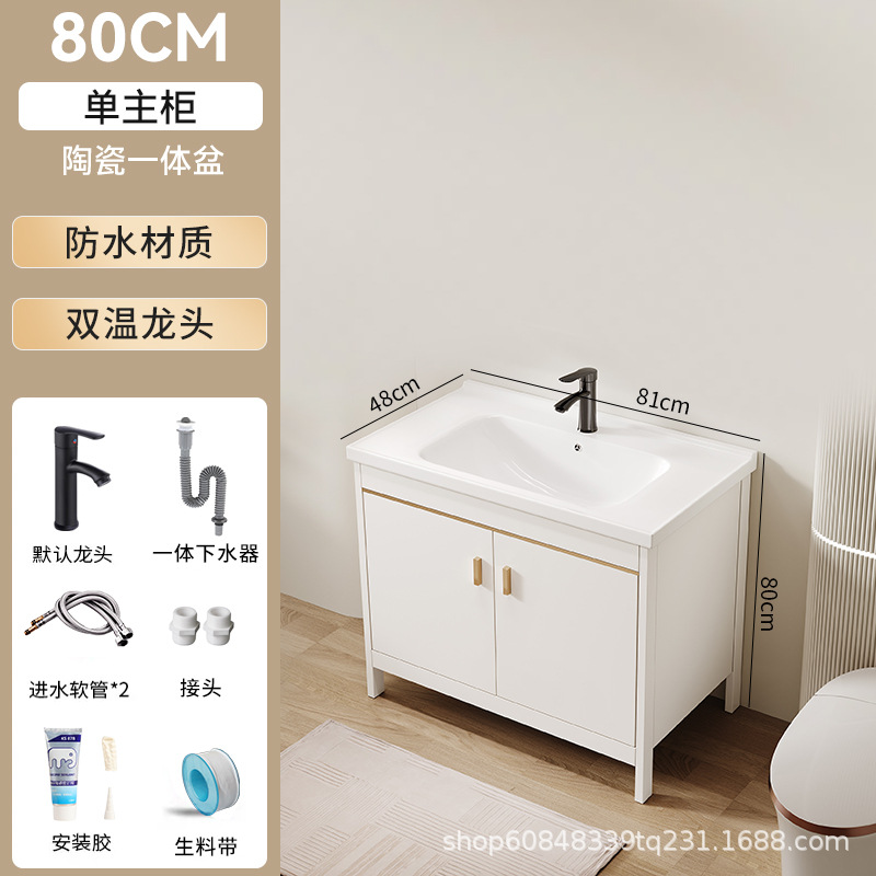 • 80CM 플로어 스탠딩 세라믹 세면대 캐비닛 [거울이 없는 단일 캐비닛]