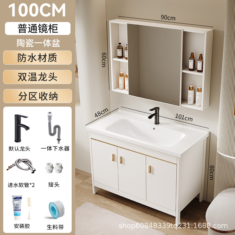 • 101CM 플로어 스탠딩 세라믹 세면대 캐비닛 [일반 거울 캐비닛]