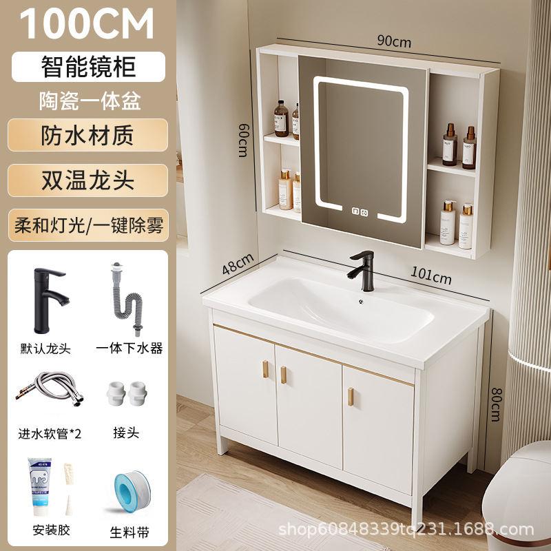 • 101CM 플로어 스탠딩 세라믹 세면대 캐비닛 [스마트 거울 캐비닛]