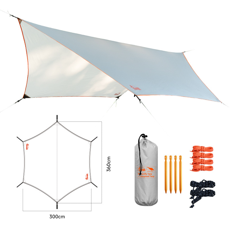 去户外必备的天幕,能遮阳挡风挡雨保暖;能做庇护所休息,能辅助帐篷或者吊床加强遮阳挡风挡雨;其展开面积大,收纳尺寸小,重量轻是户外装备必备之一!