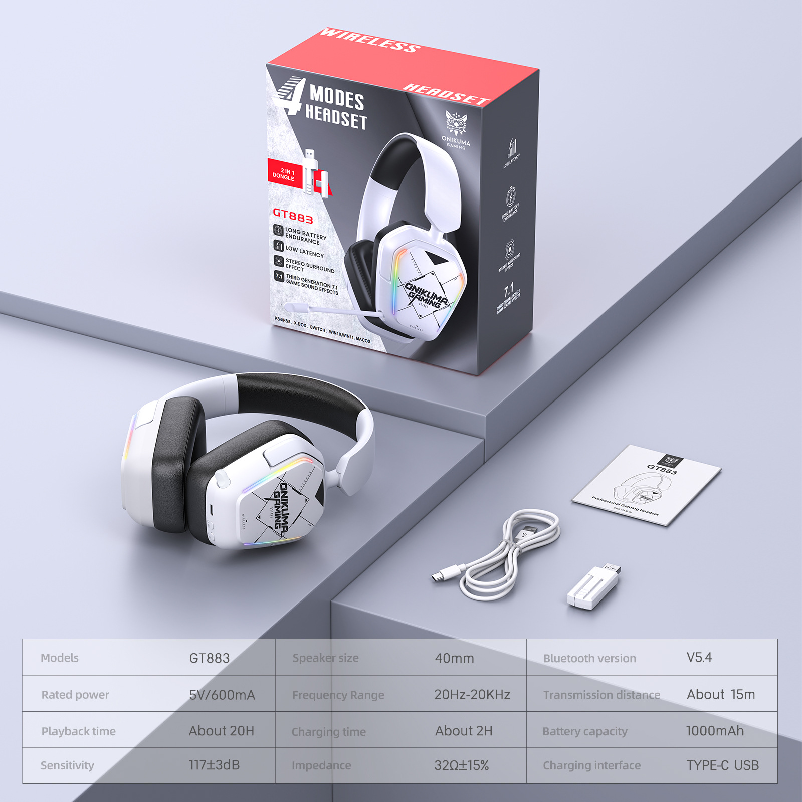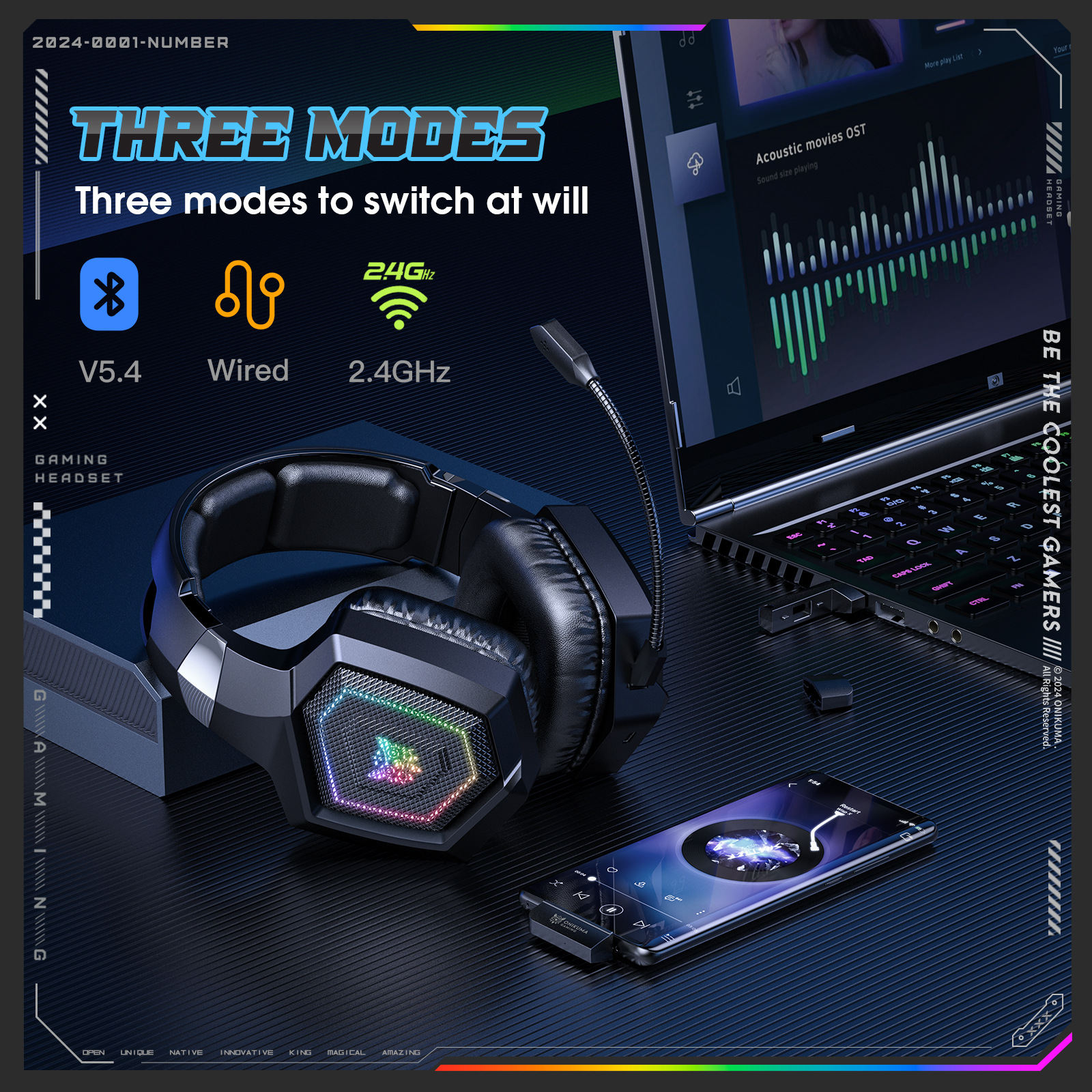 국경 간 새로운 ONIKUMA B100 무선 게임 헤드셋 헤드셋 블루투스 2.4G 헤드셋 RGB Luminous스토어 가기