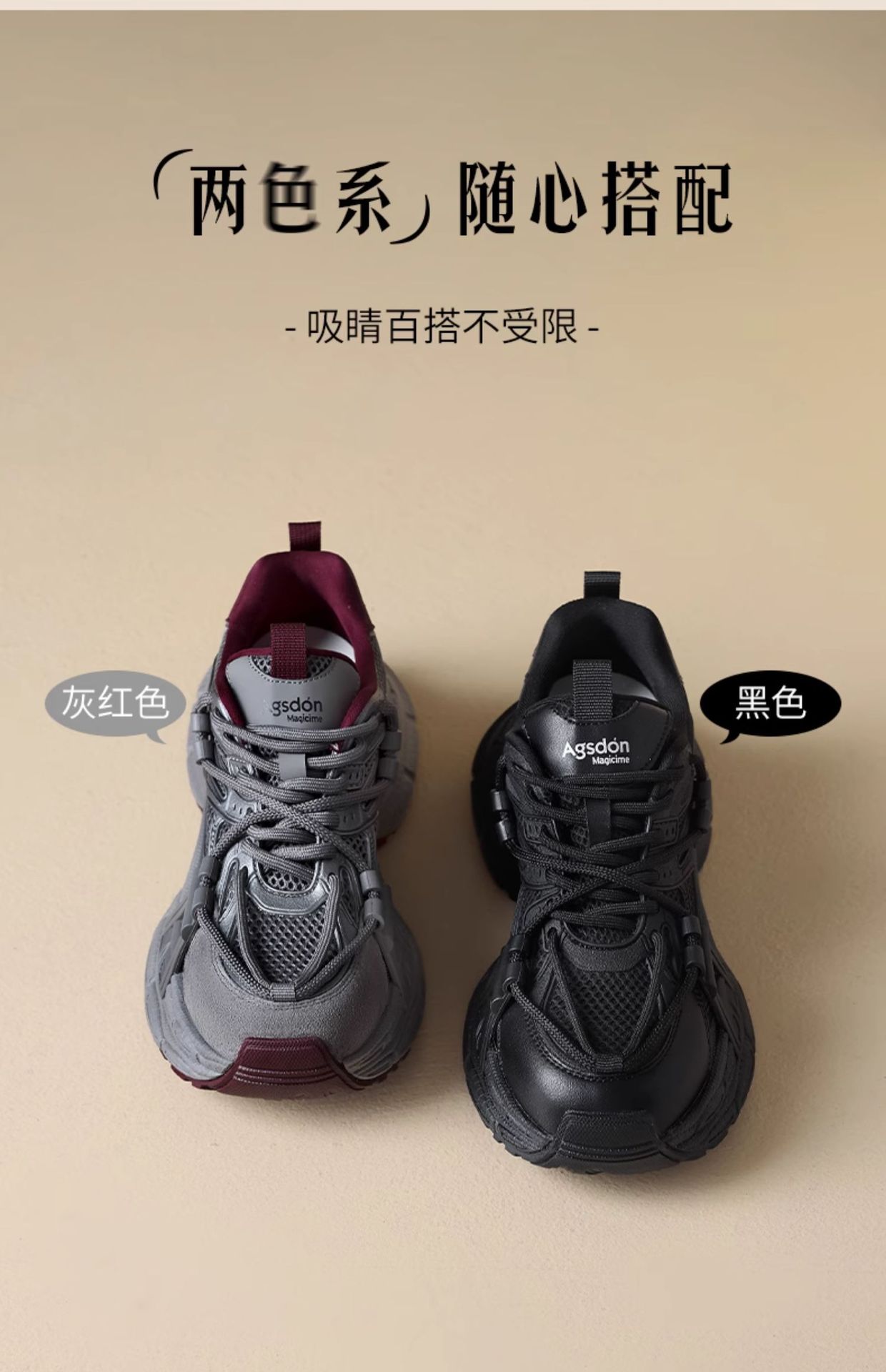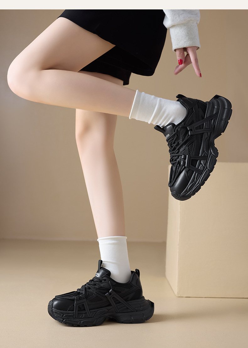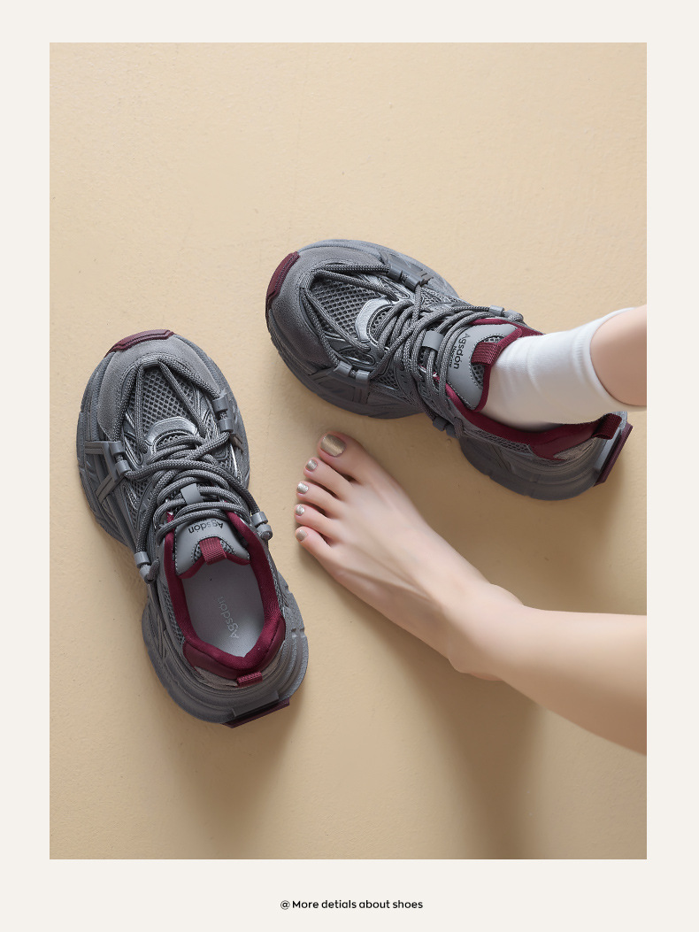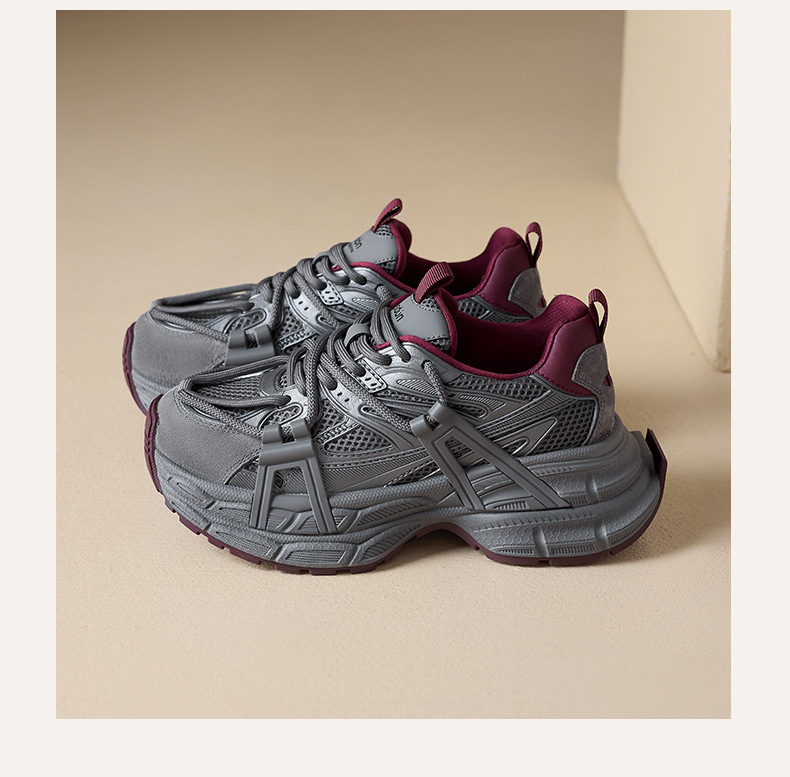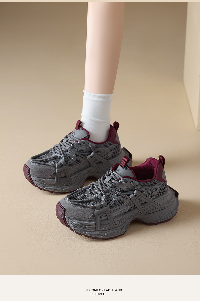오구시뎅 그레이 여성용 아빠 신발 2025년 신상 겨울 발을 작아 보이게 하는 두꺼운 밑창 캐주얼 신발 스포츠 등산화