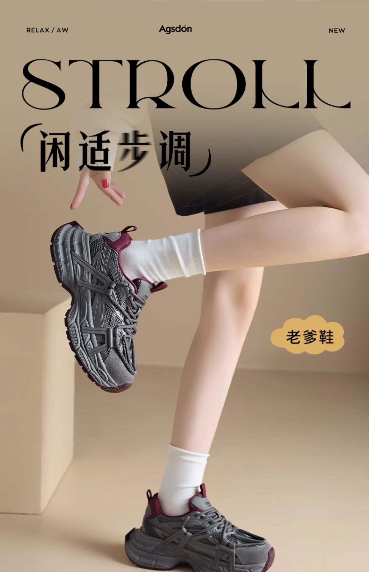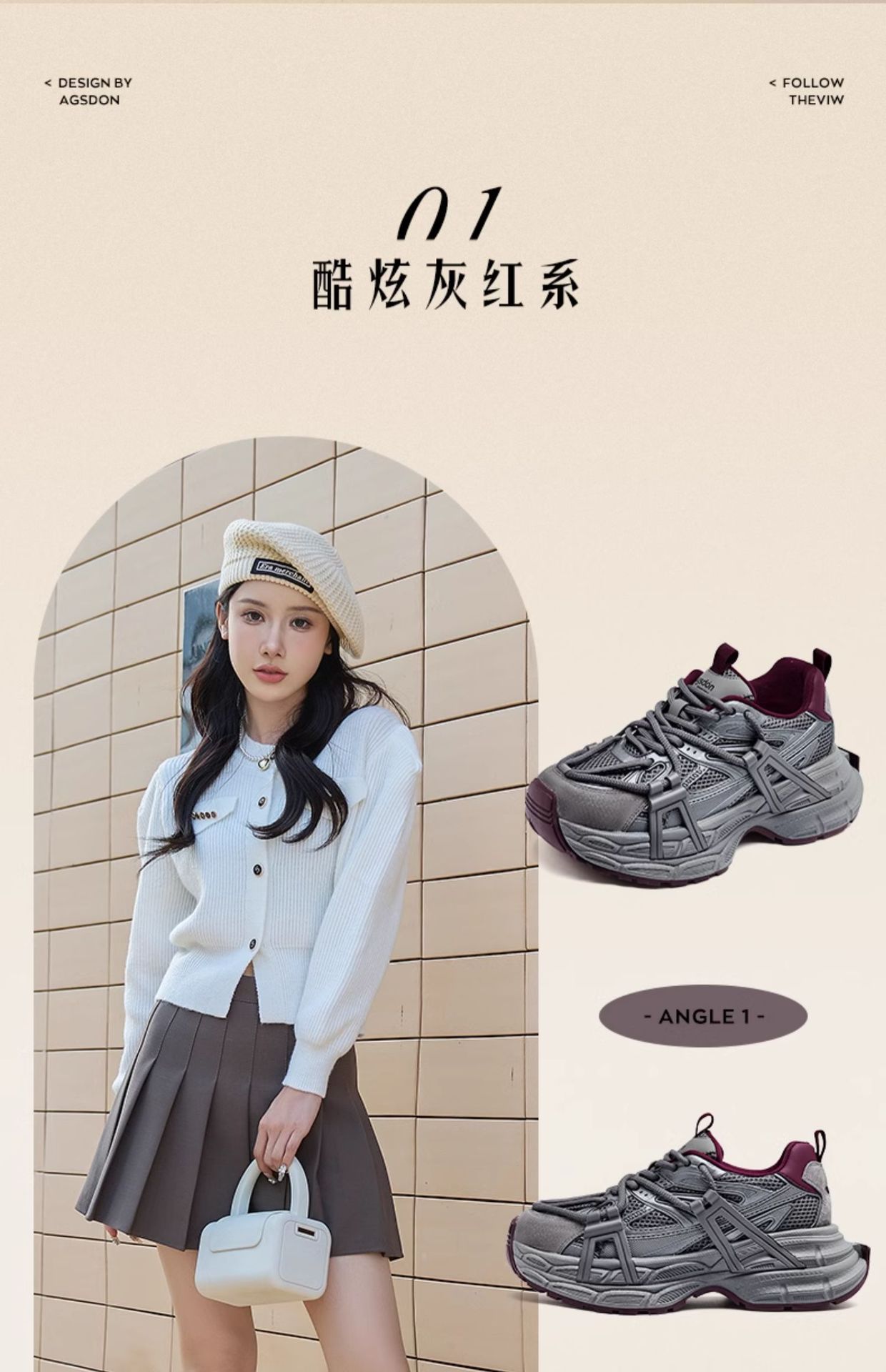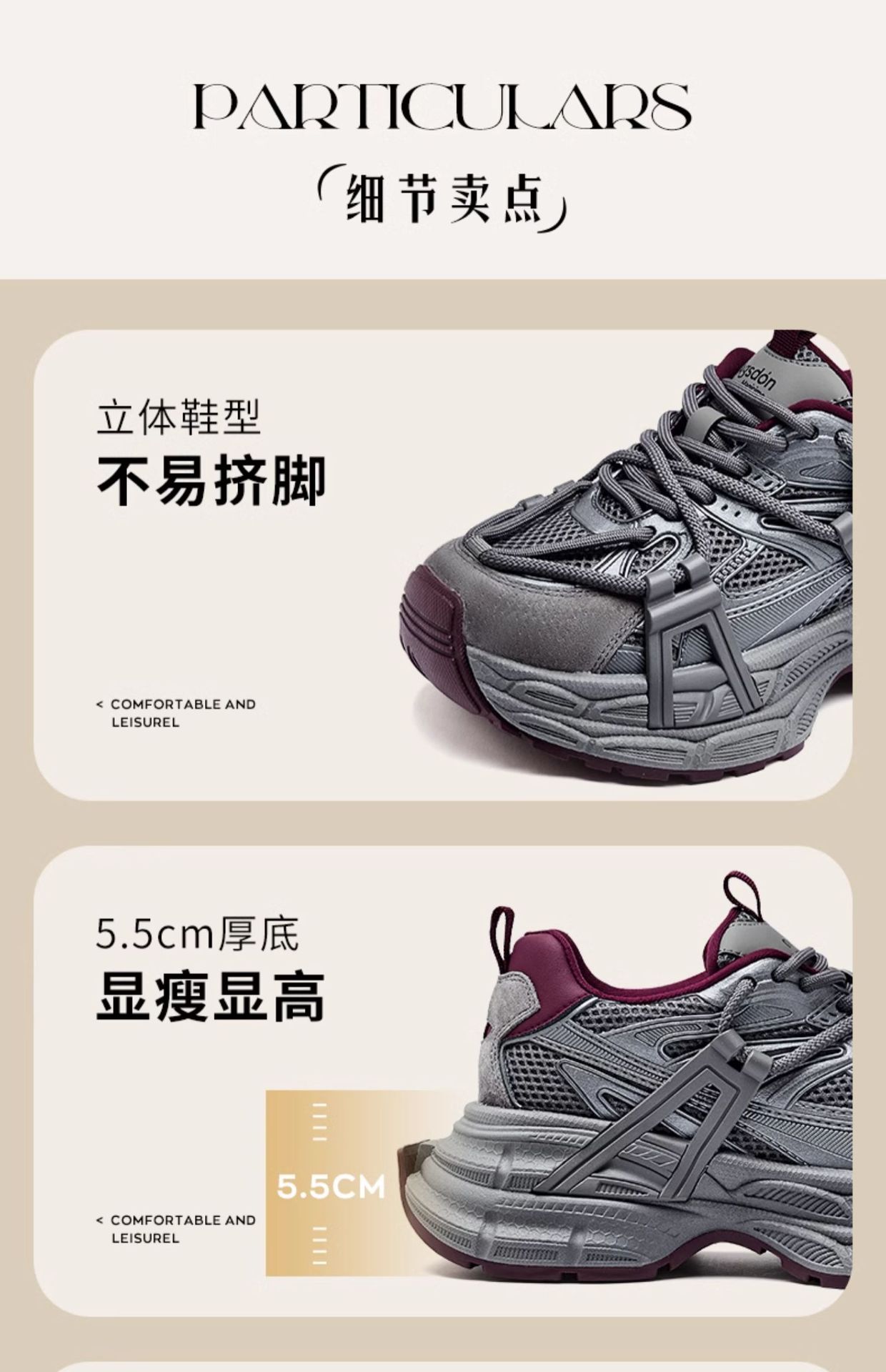 오구시뎅 그레이 여성용 아빠 신발 2025년 신상 겨울 발을 작아 보이게 하는 두꺼운 밑창 캐주얼 신발 스포츠 등산화