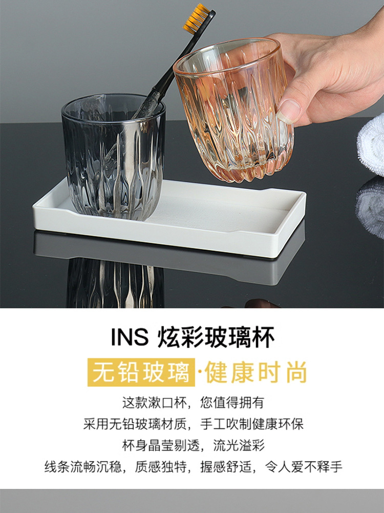 간단한 Ins 라이트 패턴 마우스 워시 컵 가정용 유리 브러시 컵 세트 워시 컵 호텔 칫솔 컵