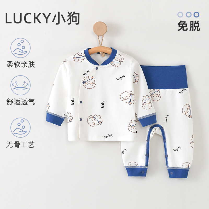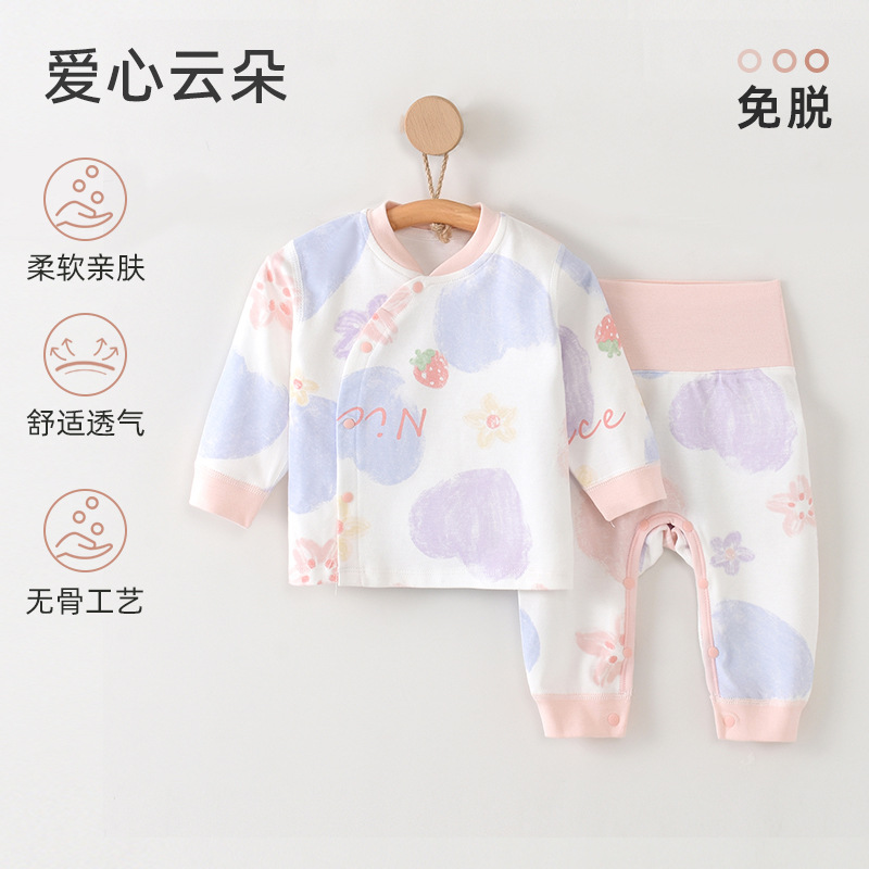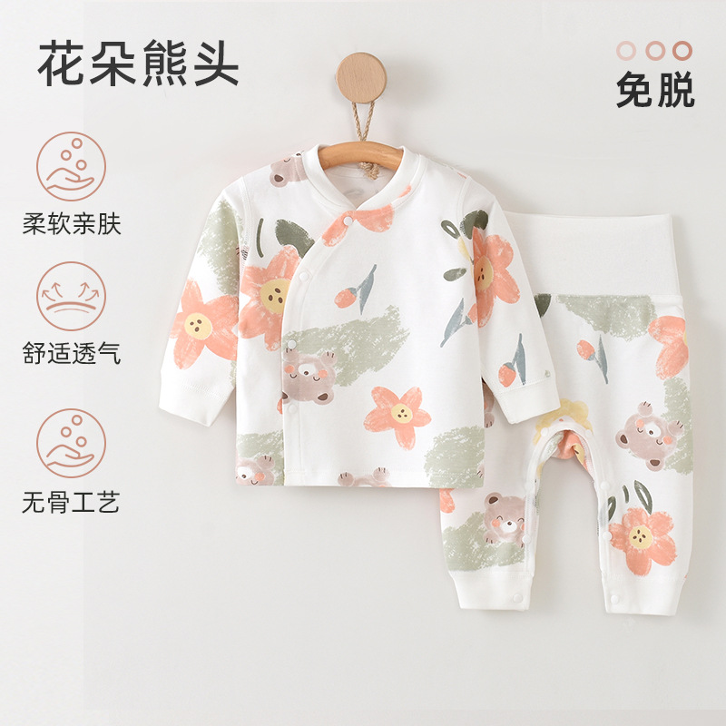 아기 클래스 순수한 면화 분할 세트 높은 허리 따뜻한 가을 옷과 바지 세트 신생아 아기 사계절 홈 옷스토어 가기