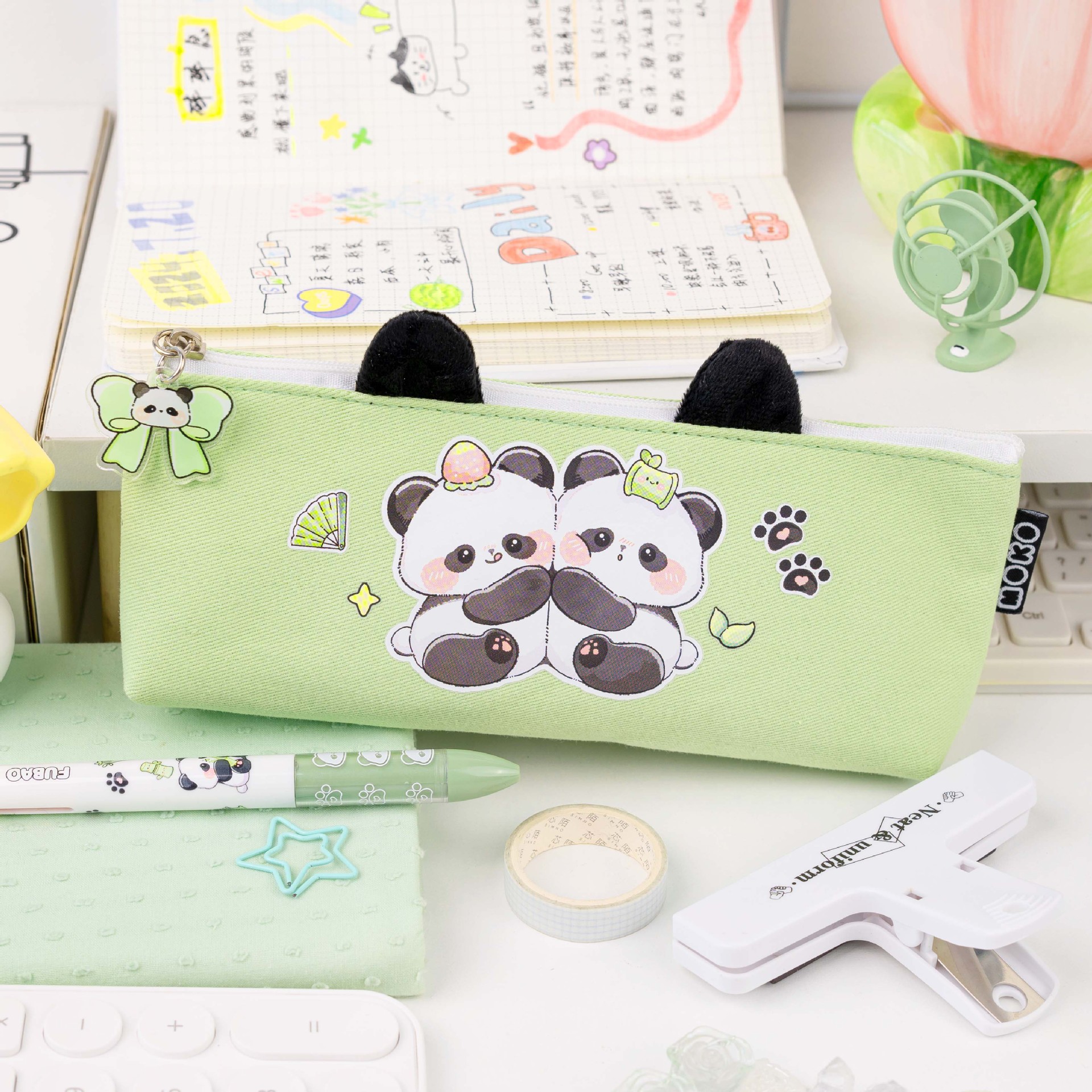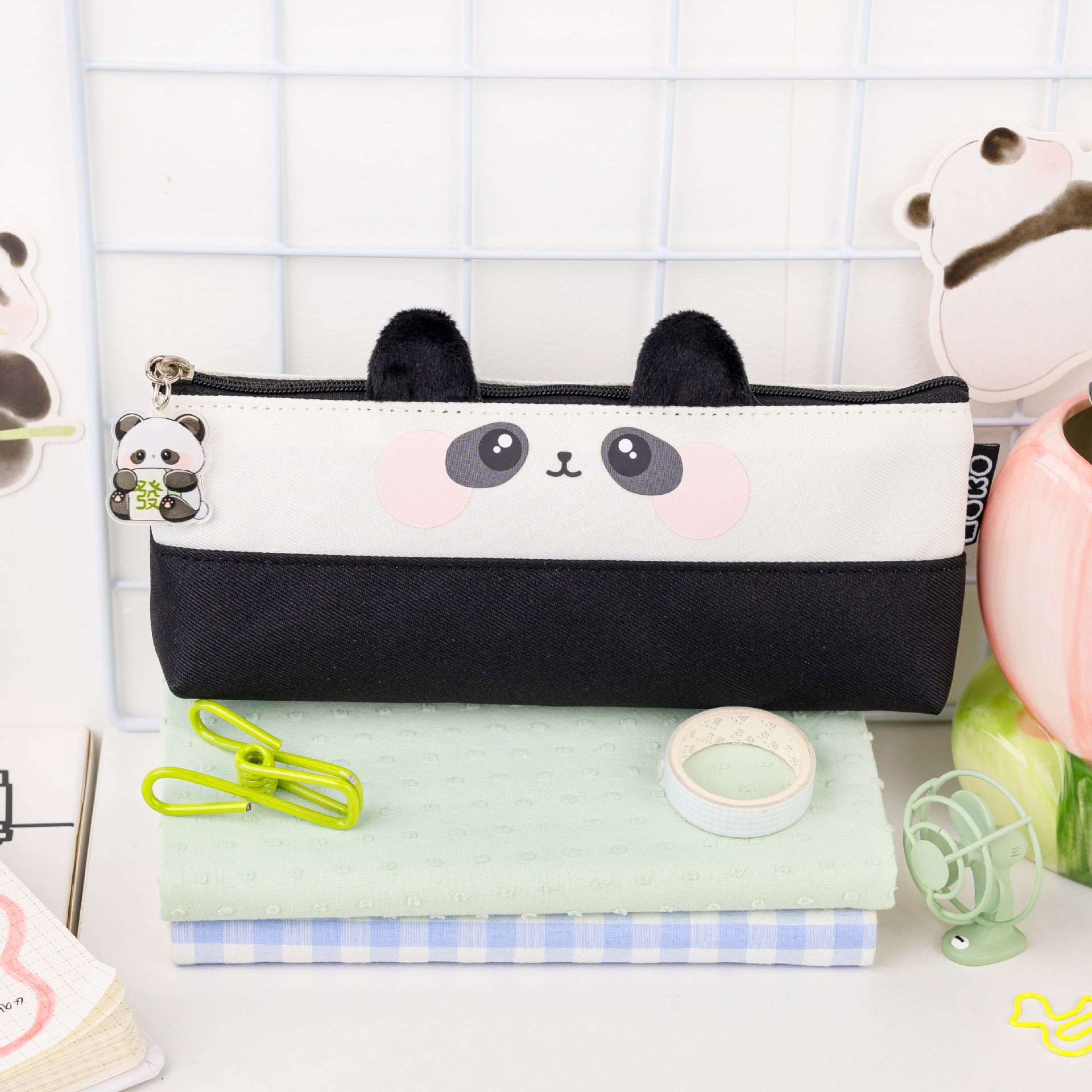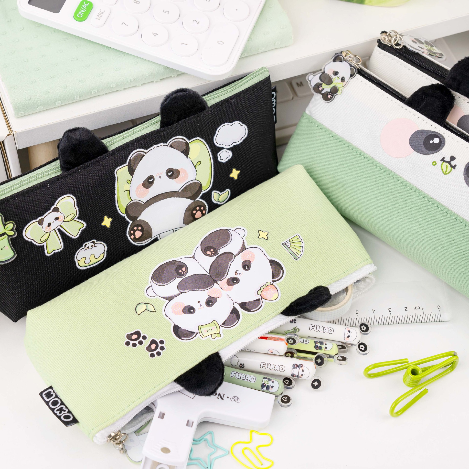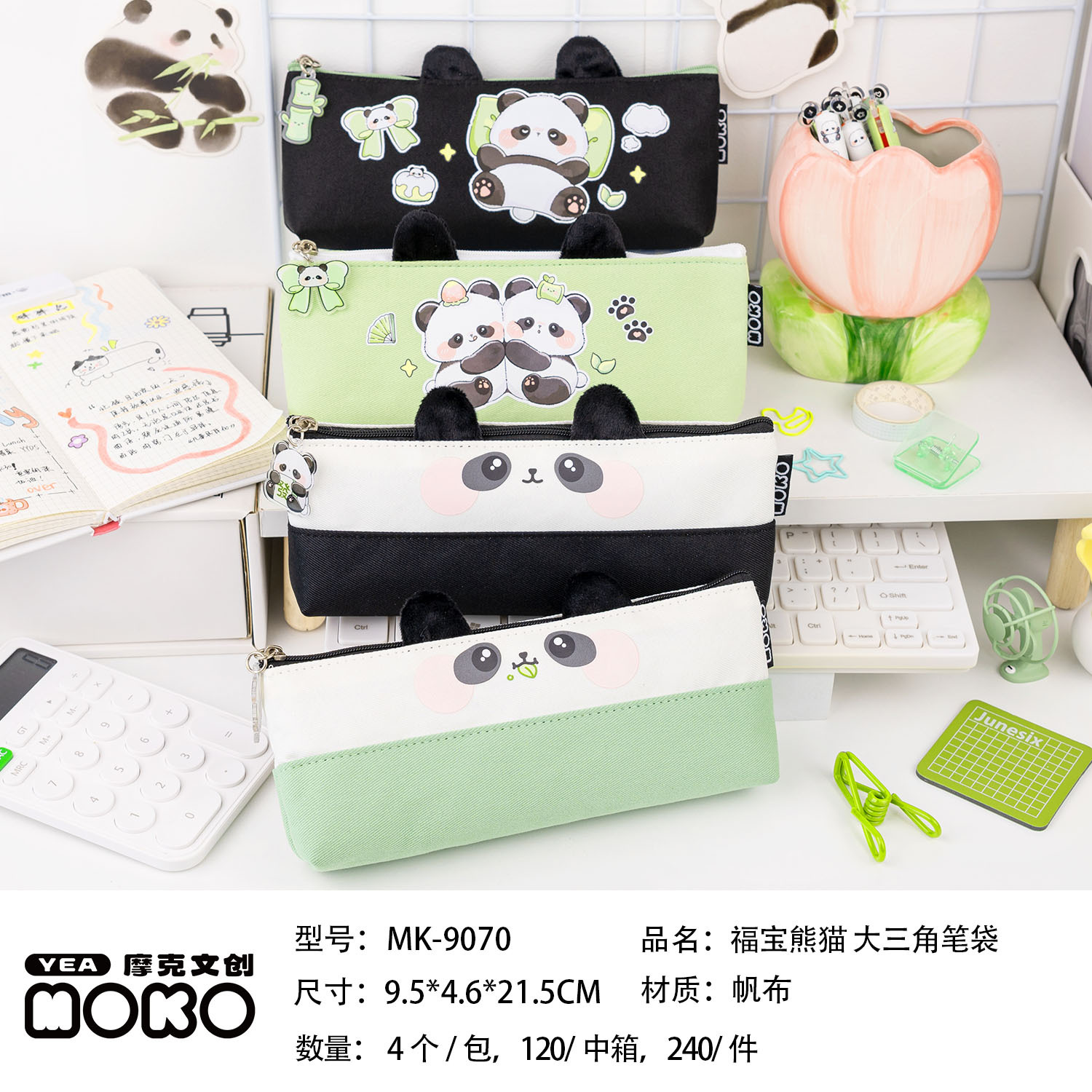 Fubao Panda 대형 삼각형 연필 가방 캔버스 조립 만화 스타일 중학생 대용량 연필 가방 문구 가방